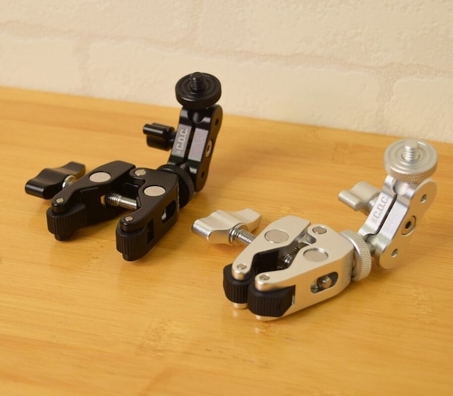 【アイテム説明】 小型・軽量のクランプ。重量97グラムの軽量モデル。10-35㎜のパイプに取付可能。エッジスタンド等の耐荷重がそこまで大きくないアイテムに取り付けるのに最適なサイズ。CDCフックやCDCマグベース&CDCマグスペース等様々なアイテムとの組み合わせで使用可能。 品番 (JANコード) オプション CDC-027 (4975981770319) シルバー CDC-037 (4975981770425) ブラック 主な仕様 サイズ:120x60㎜ 重量:97g ポール固定幅:10-35㎜ 耐荷重:1㎏ 材質:アルミニウム 取付ネジ:1/4”オスネジ、1/4”メスネジ