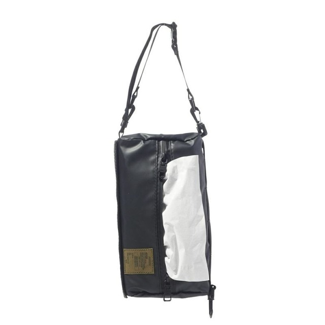 一般的なBOXティッシュから大きめのBOXティッシュまで収納可能なティッシュ ケースです。車のヘッドレストや、アウトドアチェアーにも取り付けができるように、ループやテープ が付属しています。 商品の付属品やパーツ等は一部デザインやカラー変更・仕様変更となる場合がございます。 予めご了承くださいませ。 NYLON POLYCARBONATE 210D ナイロンにポリウレタンを4回、その上に2回ポリカボネートのコーティングを施した生地を使用しています。通常のポリウレタンコーティングに比べ 剥離の耐久性が強く生地自体の防水性の持続性にも優れた素材になっています。
