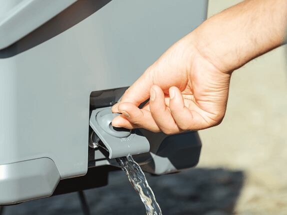 簡単操作で開閉できる便利な水栓。クーラーボックスをひっくり返さず、 手を濡らさずに水抜きできます。ヒンジ構造の為水栓を失くす心配もありません。