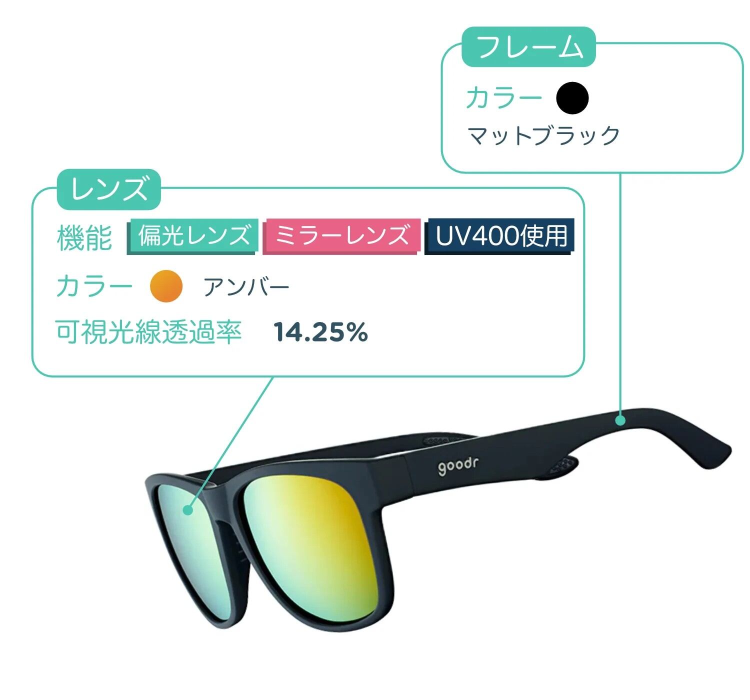 UV400 偏光レンズ採用 / ミラーレンズ