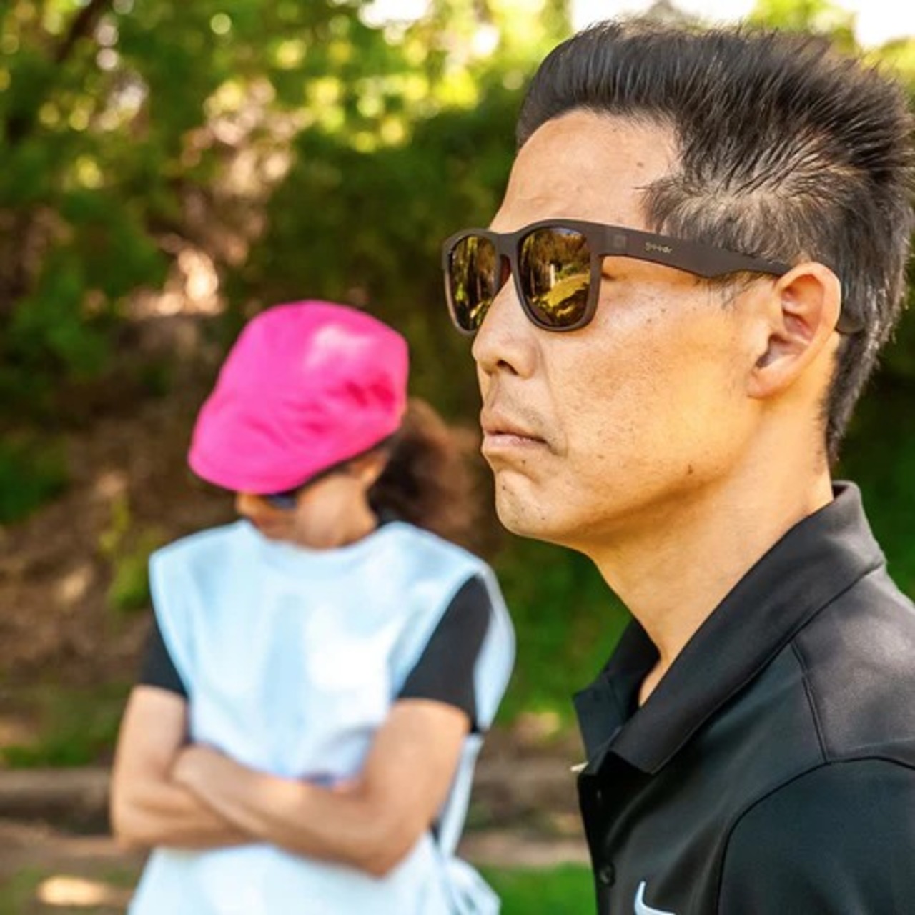 馴染みの良い木目調デザイン。ハイコントラストレンズ採用で、ゴルフにも◎