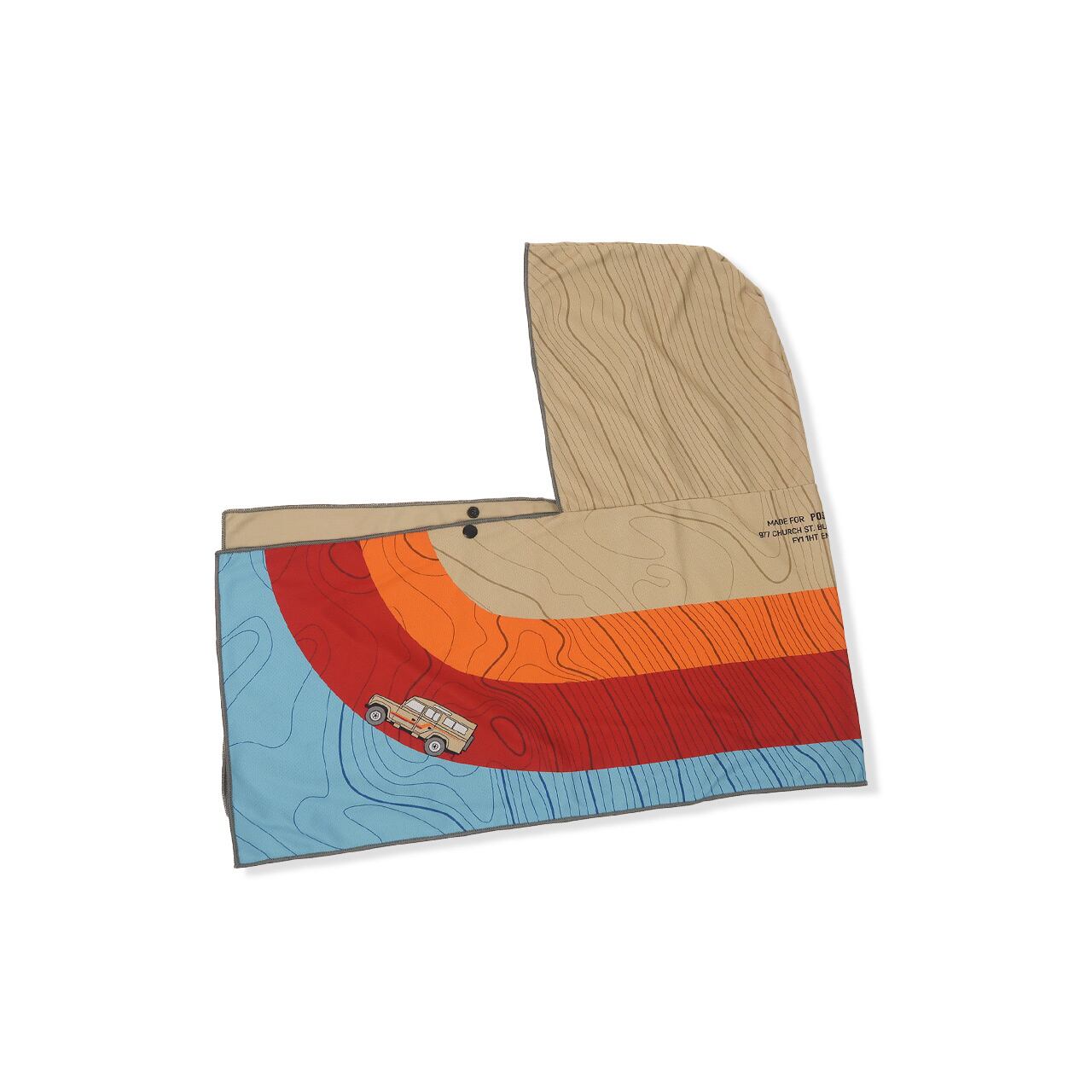羽織った時にずり落ちないスナップボタン付きなので、フェスやスポーツ観戦など両手をフリーにしたい場面で重宝します。