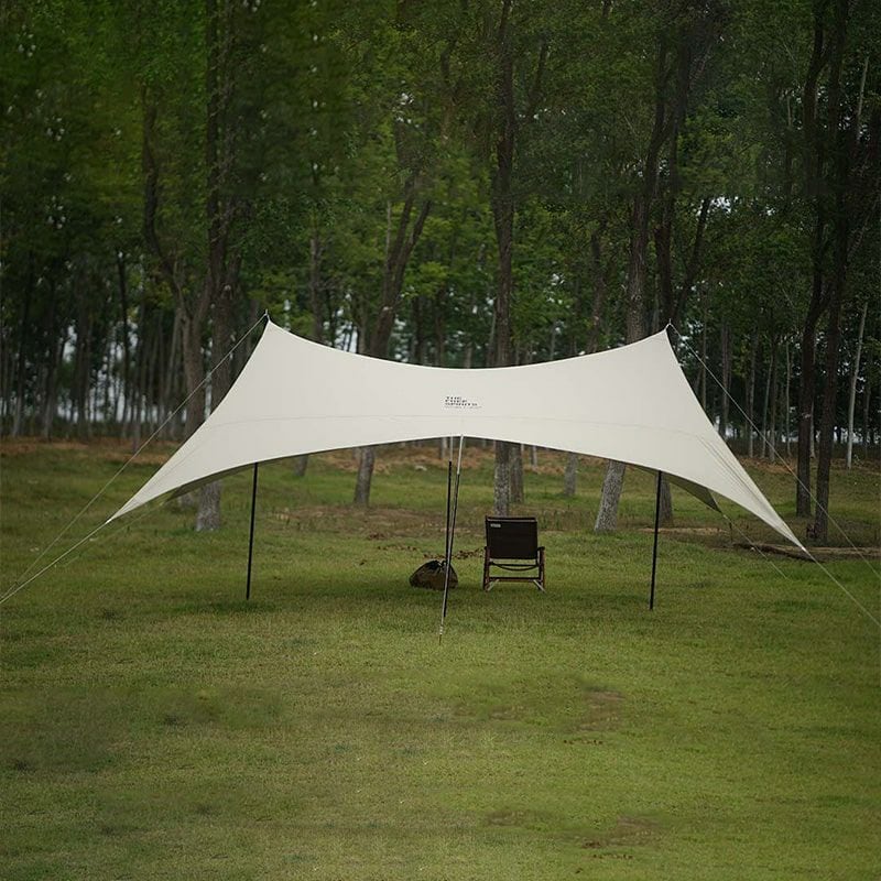 表面にシリコンコーティング、裏面にピグメントコーティングが施された遮光性が高い大型タープです。