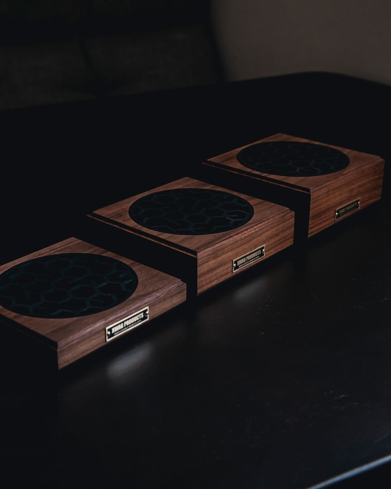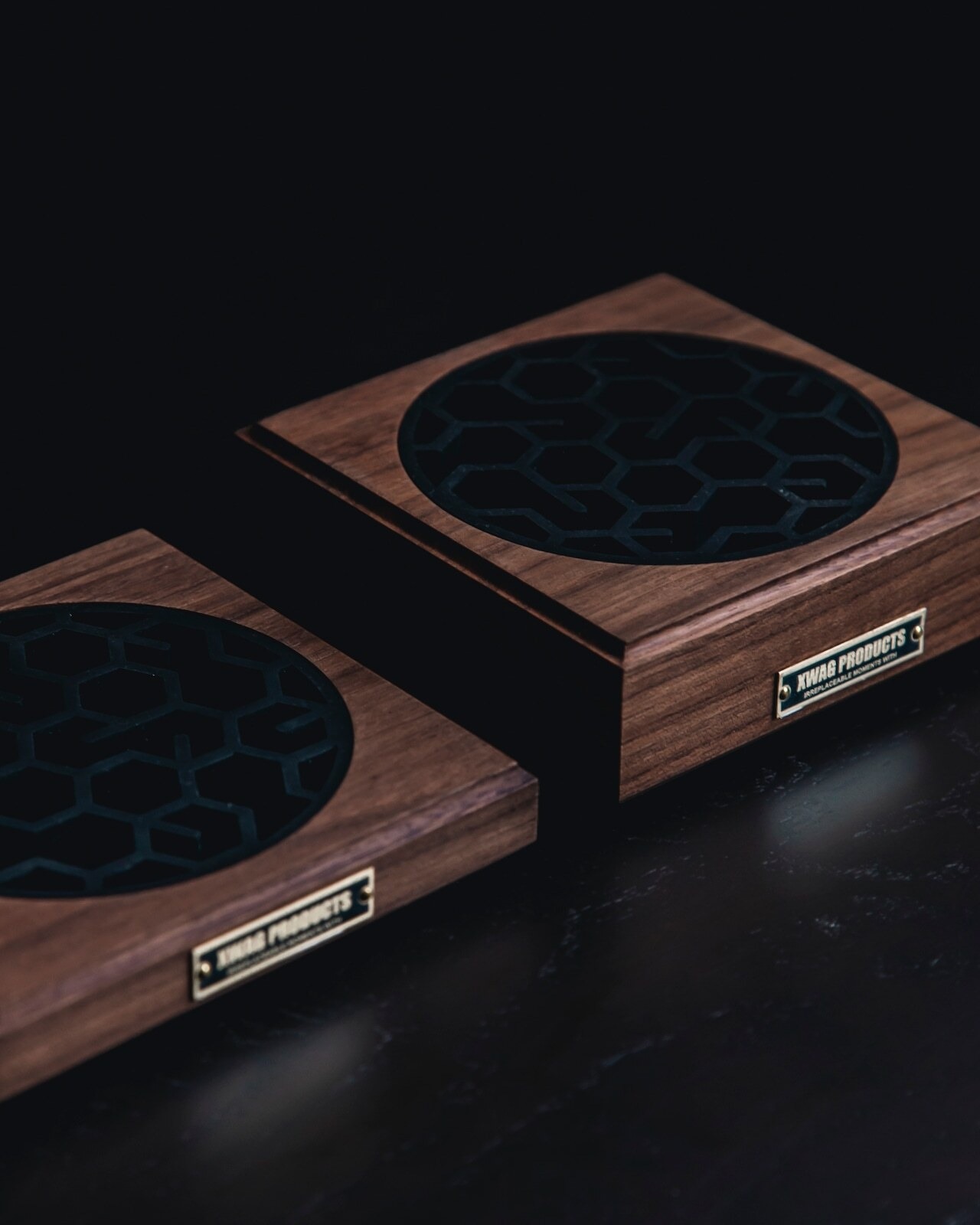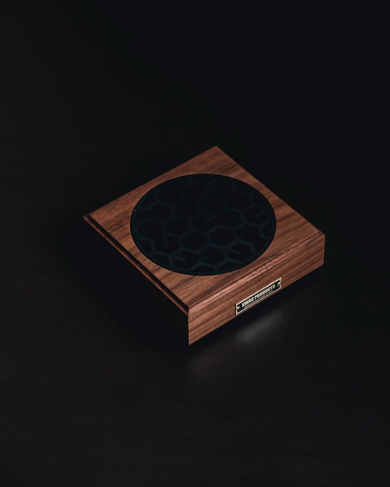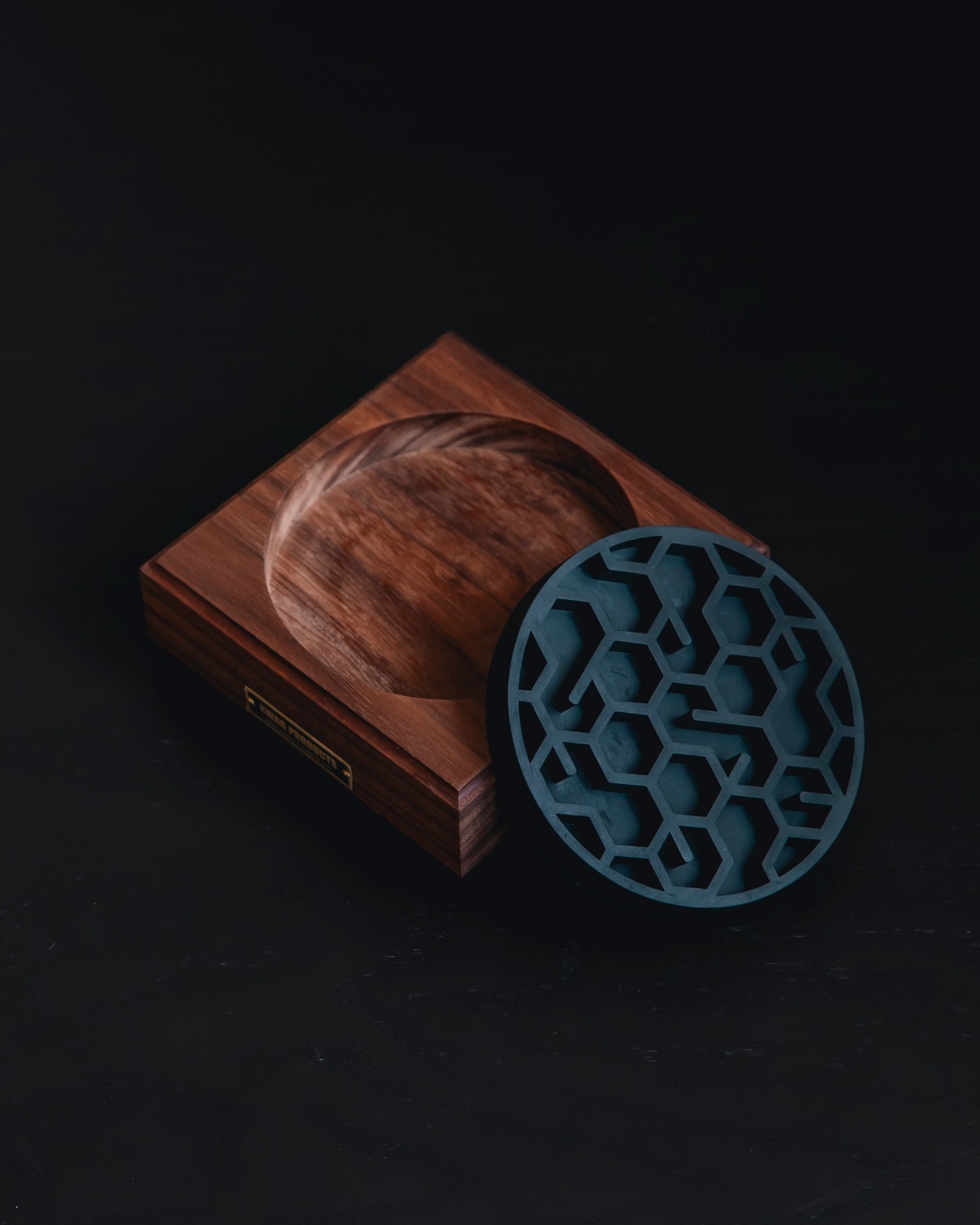 無垢ウォールナットに食品グレードのシリコーンで制作したバーマットを埋め込みました。