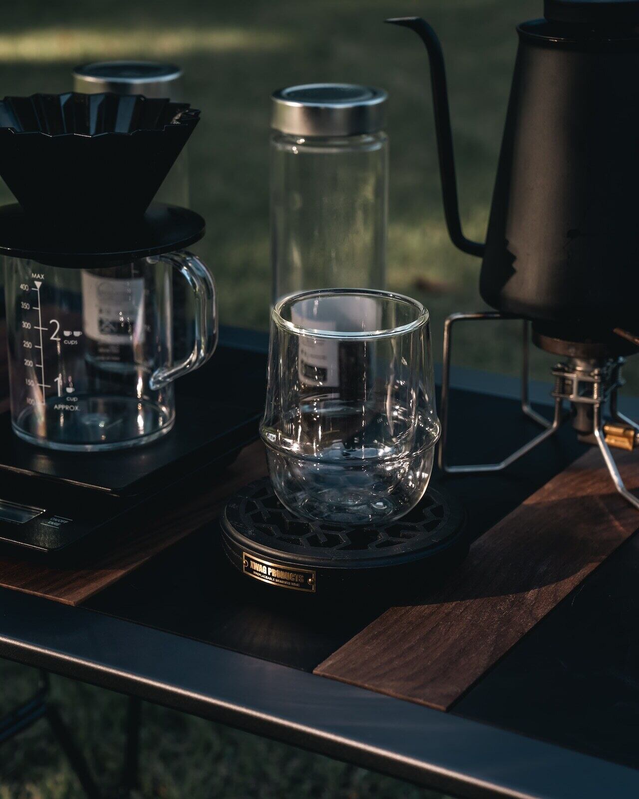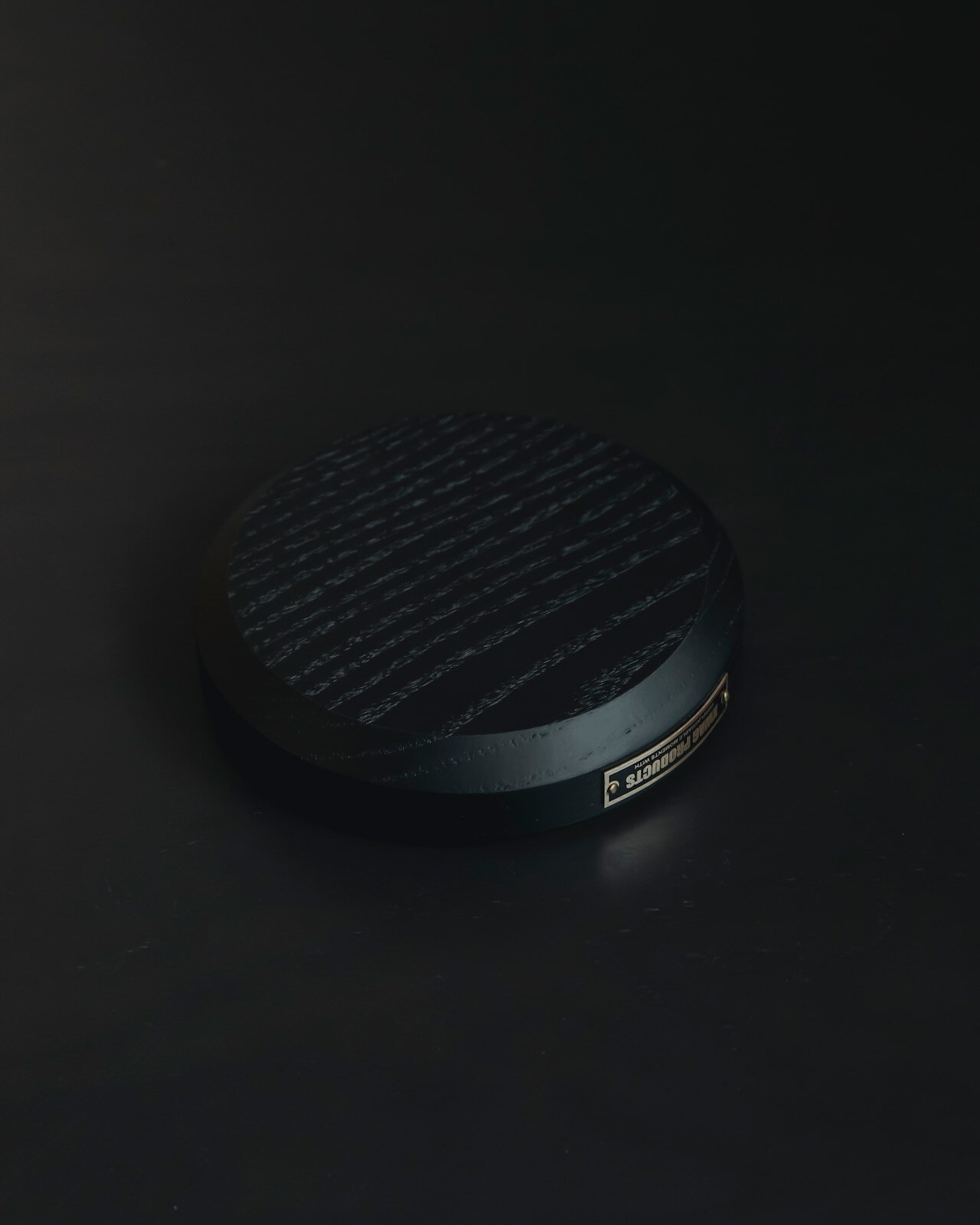 艶消しブラック塗装を施した木製台座に食品グレードのシリコーンで制作したバーマットを埋め込みました。