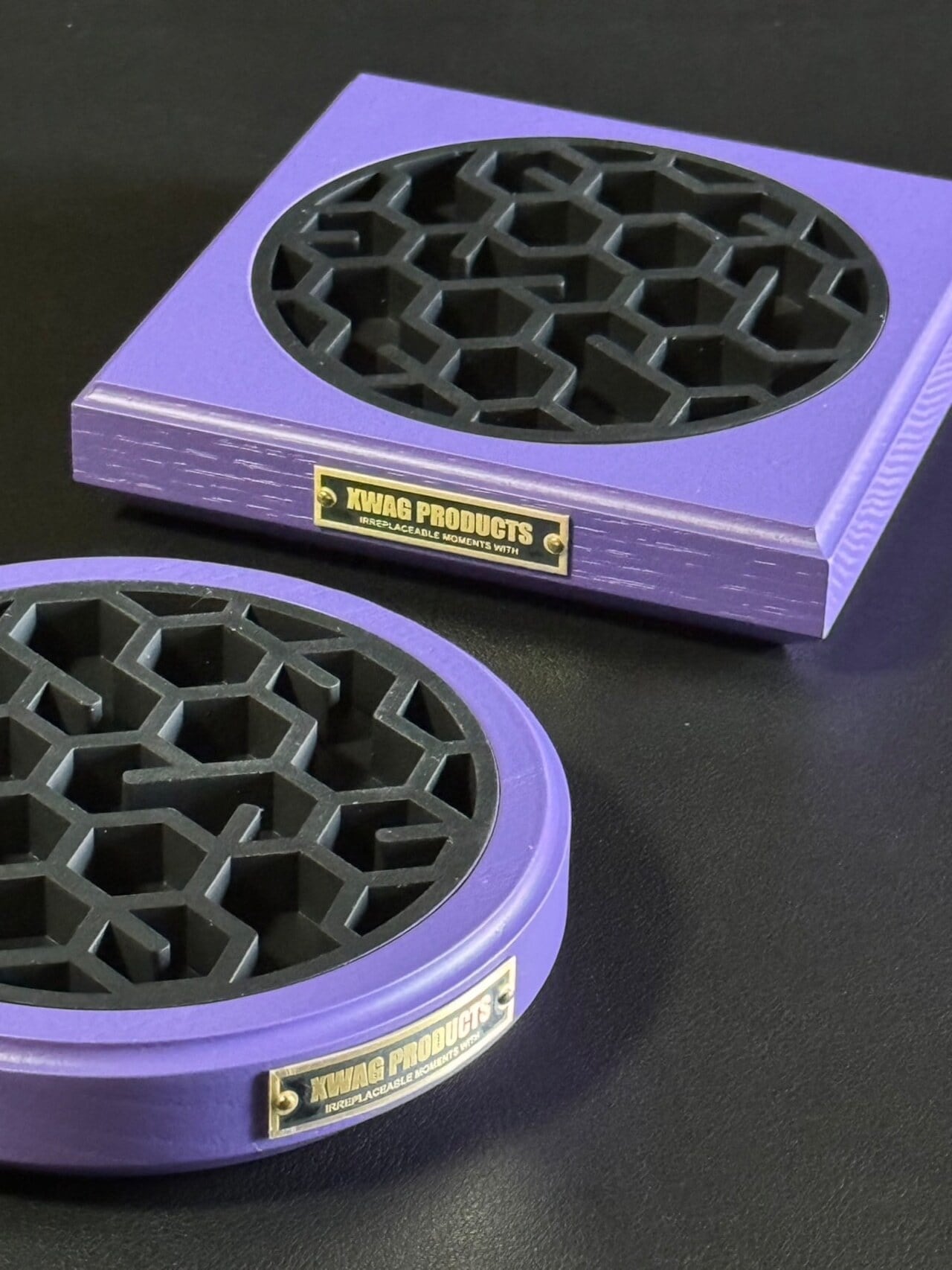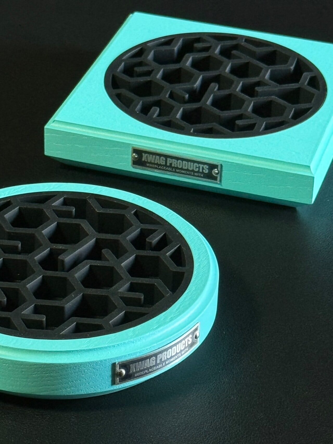 X-TAGEは中央にシリコーン製のバーマットを埋め込んだ木製コースターです。