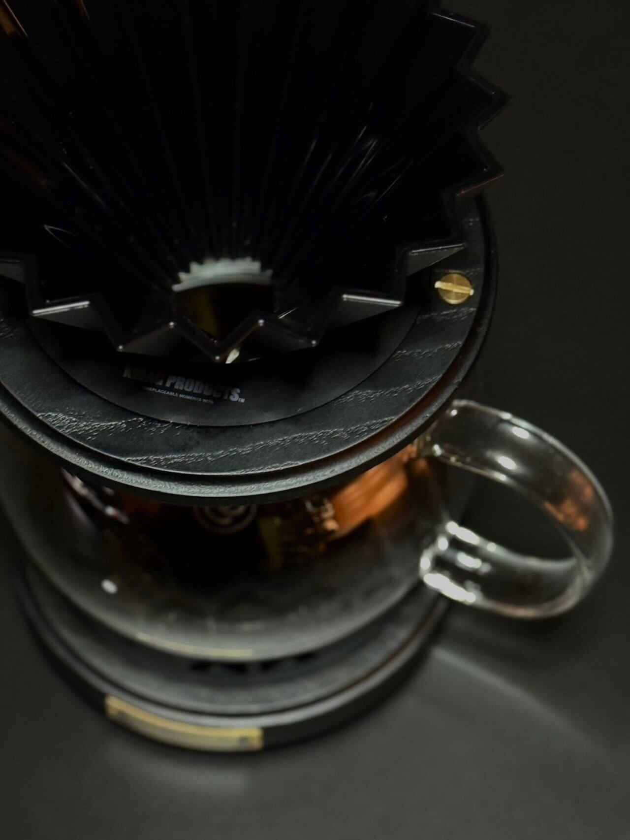艶消しマットブラック塗装を施した無垢材を使用した円錐型ドリッパー用ホルダー