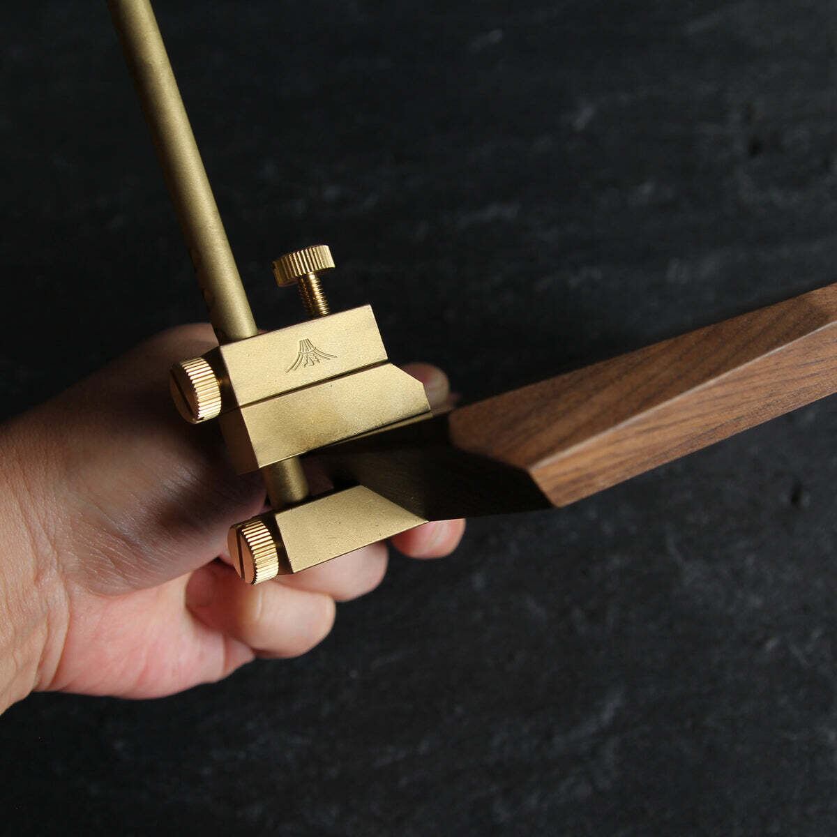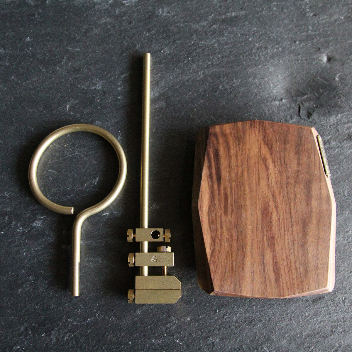 【素材】本体 真鍮 ブラスト仕上げ/ 台座 ウォルナット材(ウレタンクリア塗装)