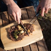 どの方向に置いても先端がテーブルにつかず、非常に衛生的なのでキャンプやアウトドアクッキング、ご自宅での焼肉など、色々なシーンで使用できます。