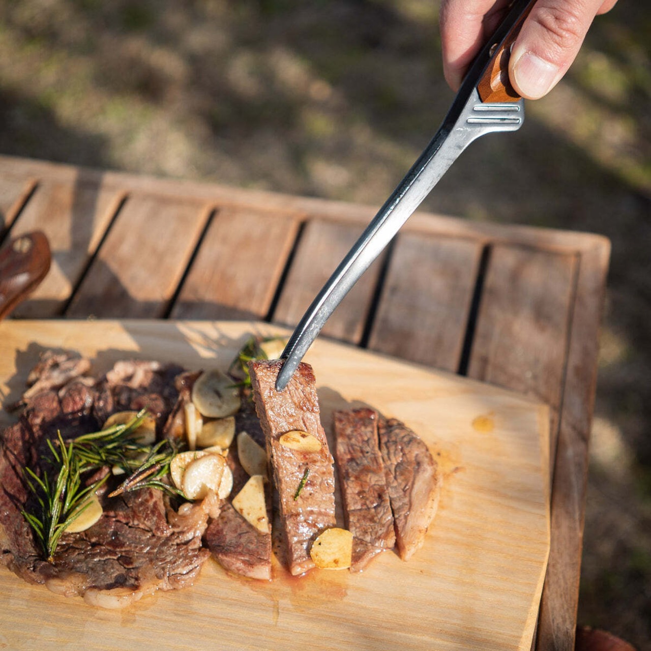 どの方向に置いても先端がテーブルにつかず、非常に衛生的なのでキャンプやアウトドアクッキング、ご自宅での焼肉など、色々なシーンで使用できます。