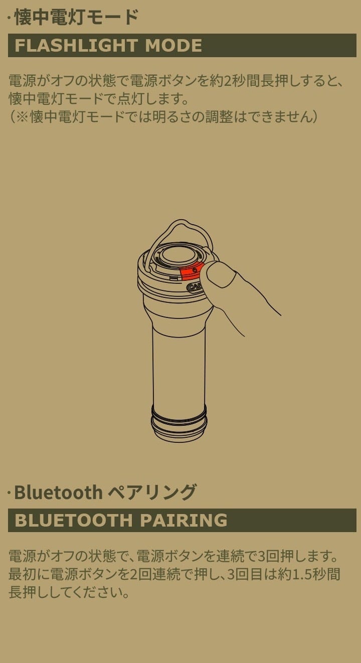 テーブルライトからテント内照明、懐中電灯モードまで、シーンに応じて自在に切り替えられます。