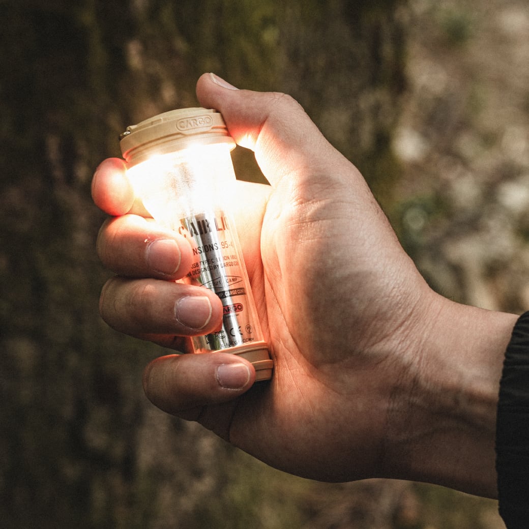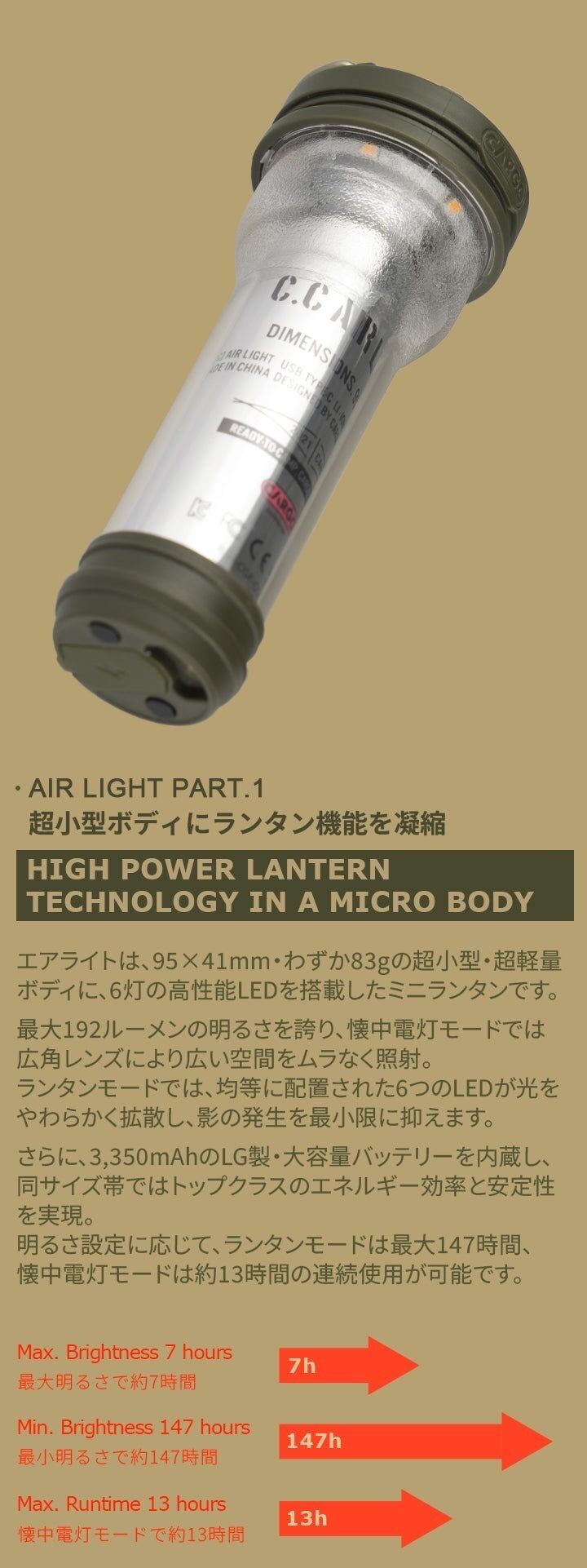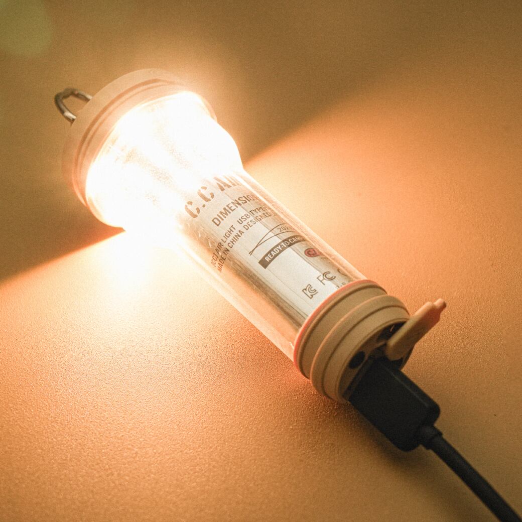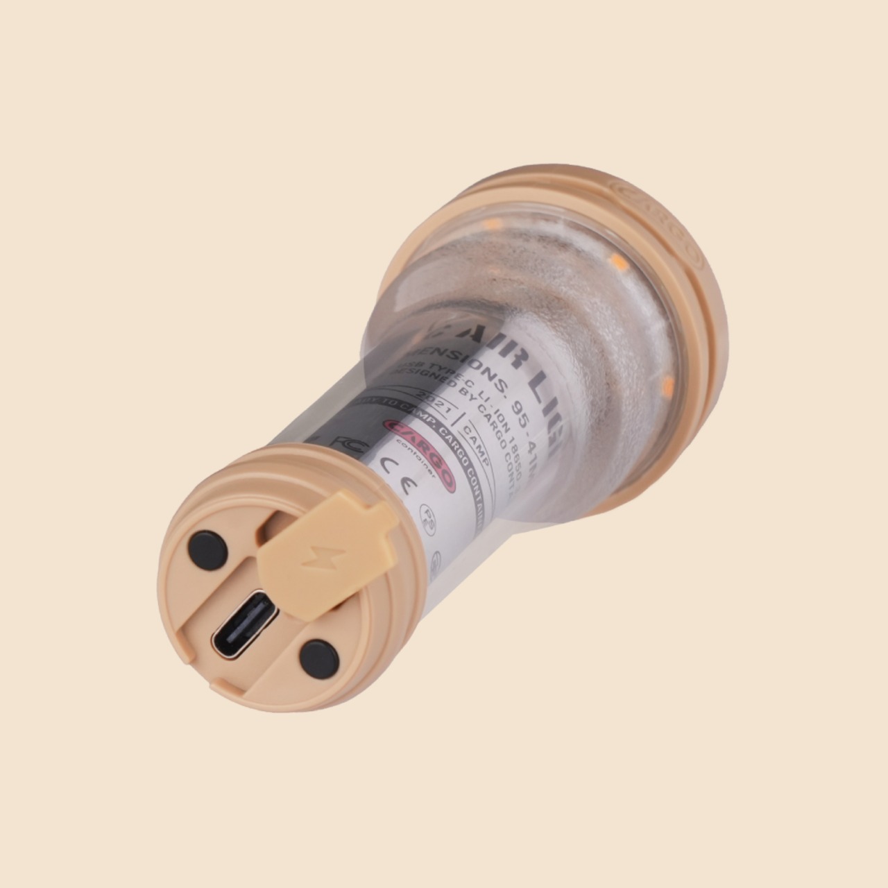 AIR LIGHTは、軽量83g・防水仕様のコンパクトボディに、キャンプに必要な機能を凝縮したポータブルランタンです。
