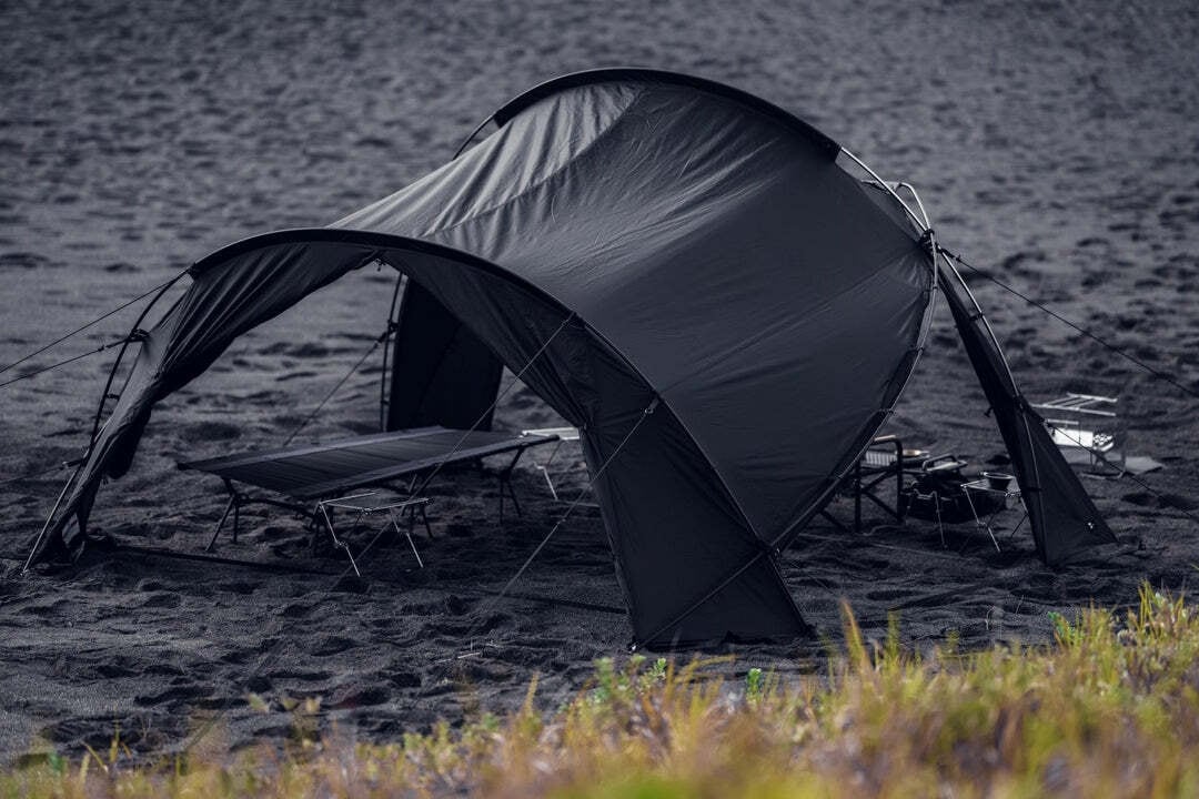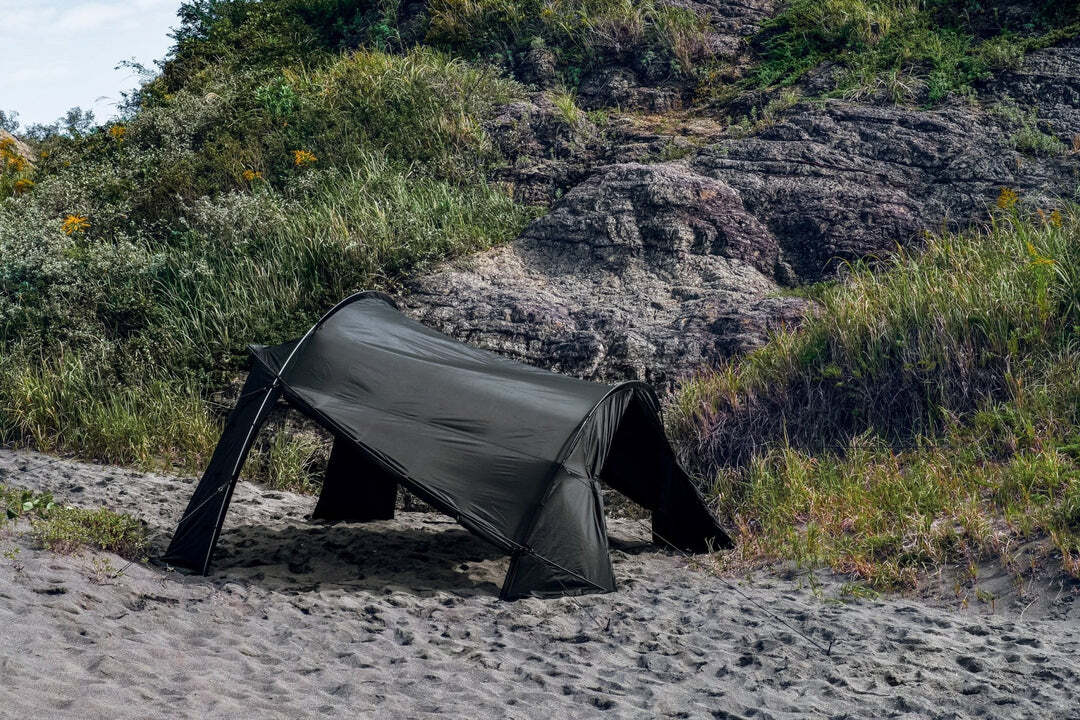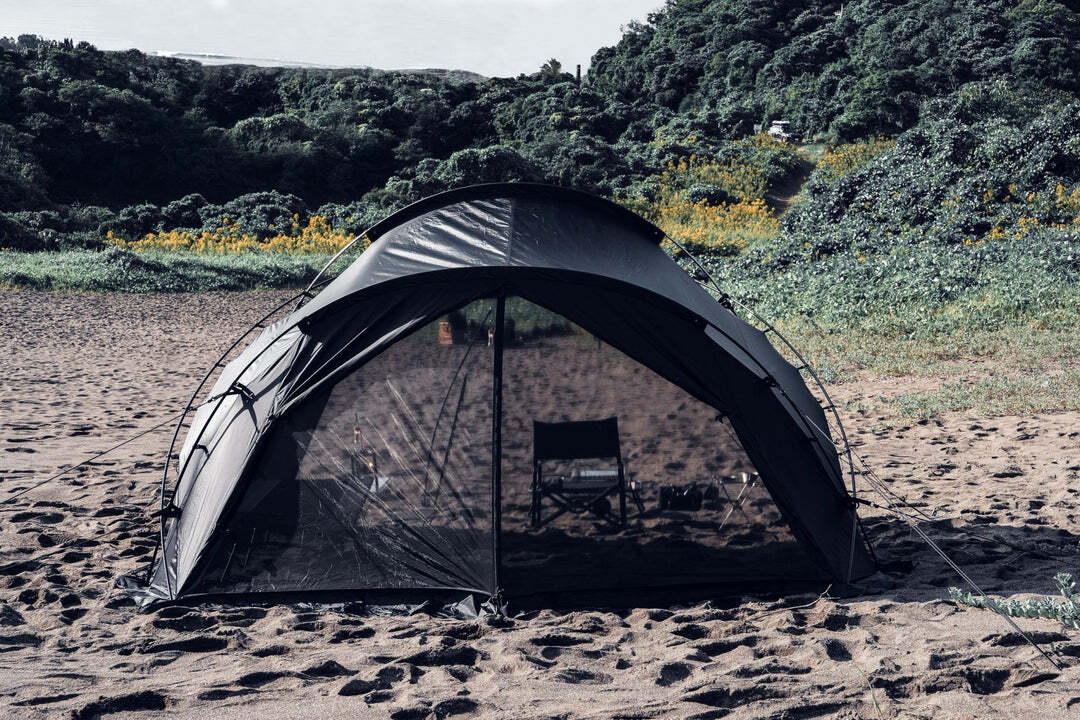 テンビは独自のフレーム構造を設計することで、「扱いやすさ」「過ごしやすさ」を両立した新しいデザインのシェルターです。