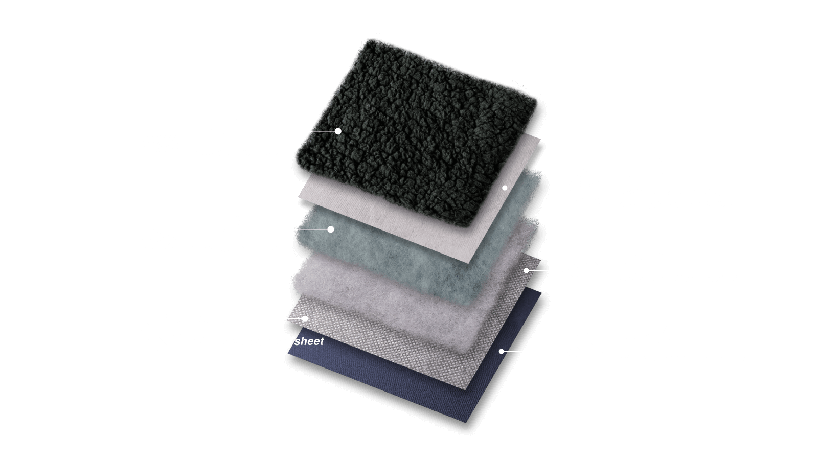 吸湿発熱シートにより、汗や空気中の水分を熱に変えて、暖かい空気をブランケット内部につくります。また、汗を吸湿し熱として発散することで、湿度がこもらずムレを軽減します。