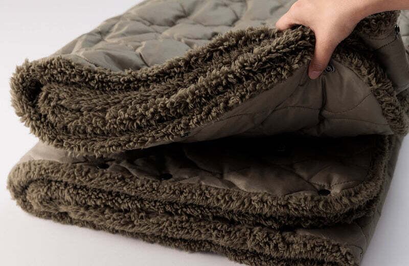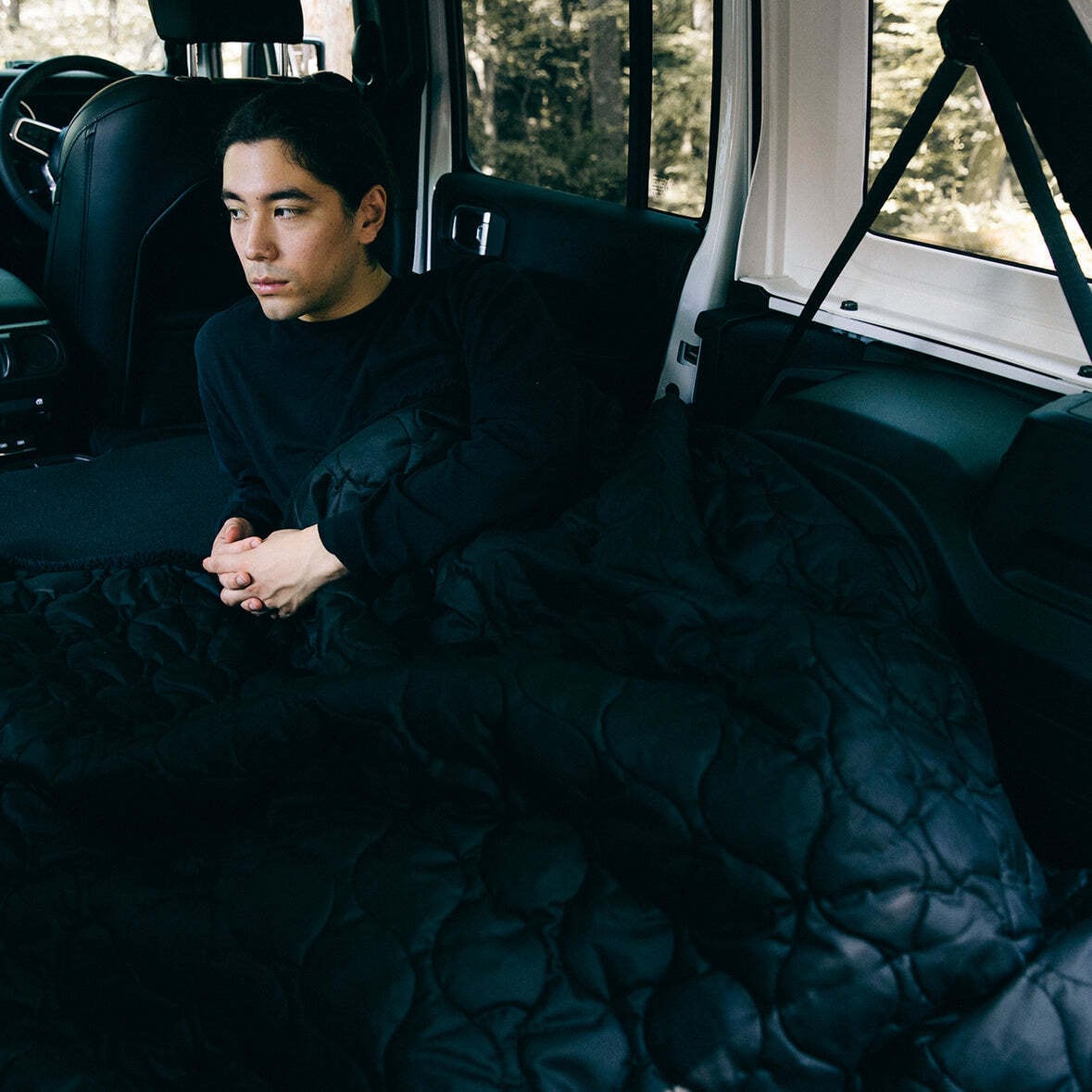 ダブルサイズのベッドにちょうどいいサイズ感。車中泊以外にも、毛布や掛け布団代わりの寝具として日常使いもおすすめです。