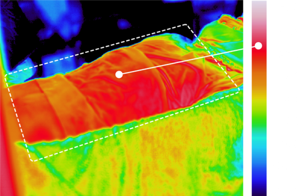 グラフェンの遠赤外線効果により、熱が高いところから低いところへ伝わり、ブランケット内部および身体全体を暖めます。