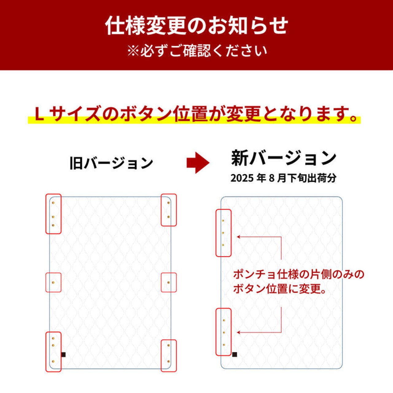 Lサイズは、138×195センチ。フロントのボタンを留めるだけでポンチョとして使えます。両手があくので、なにかと動きがちな車中泊キャンプでも、作業しながら使えます。