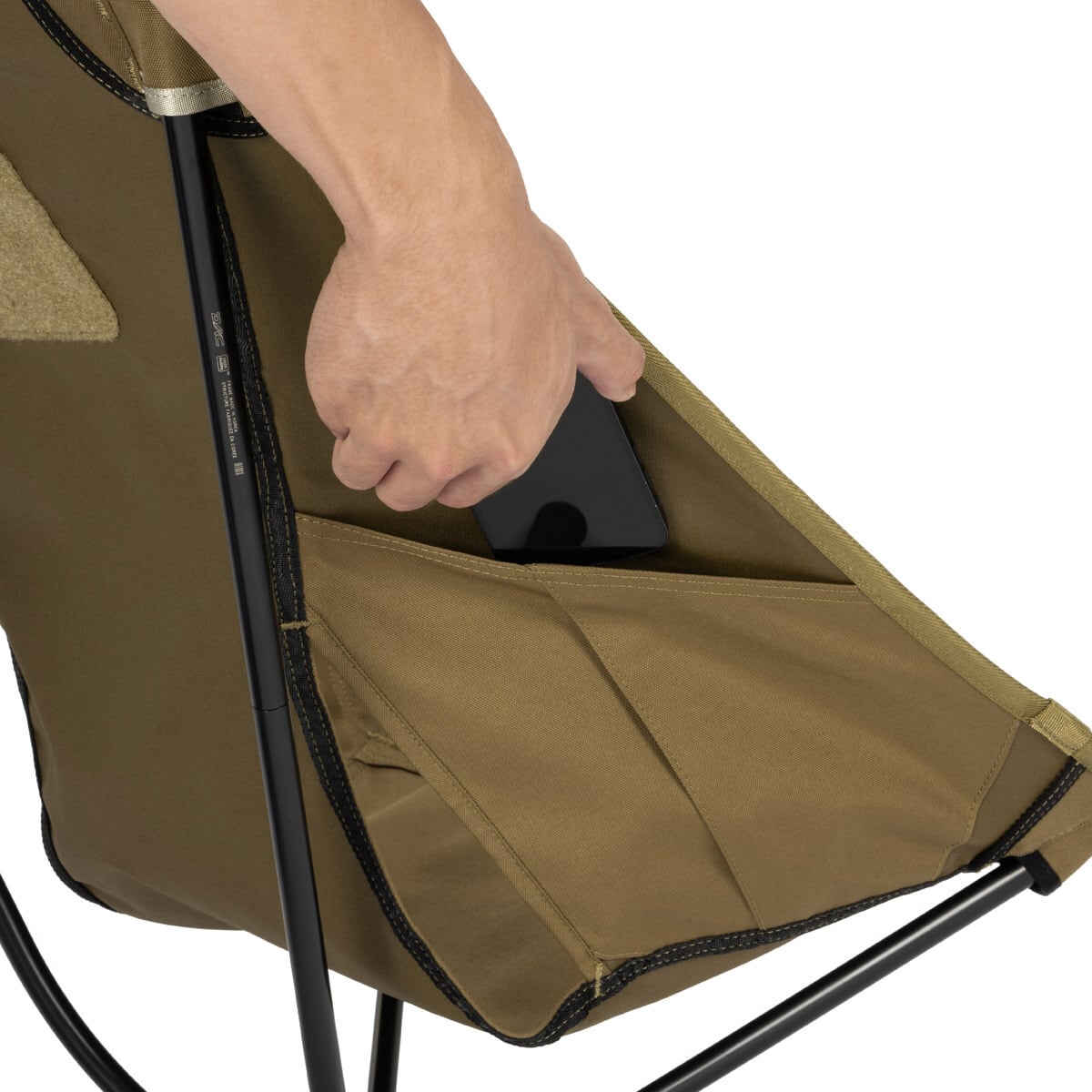 軽量な折りたたみ式でありながら、座面が回転する構造を採用したチェア。座ったままクルリと方向を変えられるので非常に便利です。吊り下げ式シートで座り心地も快適。