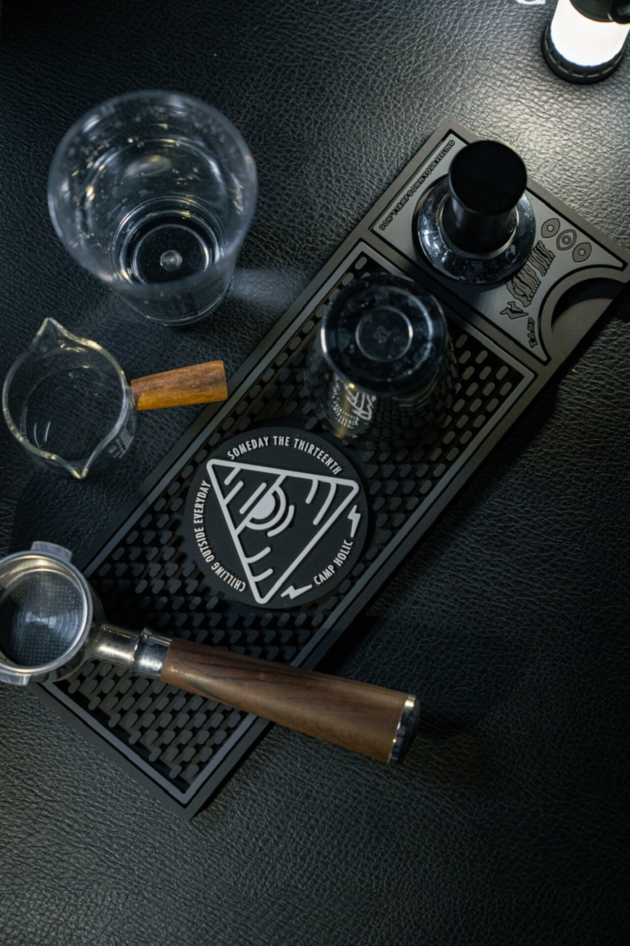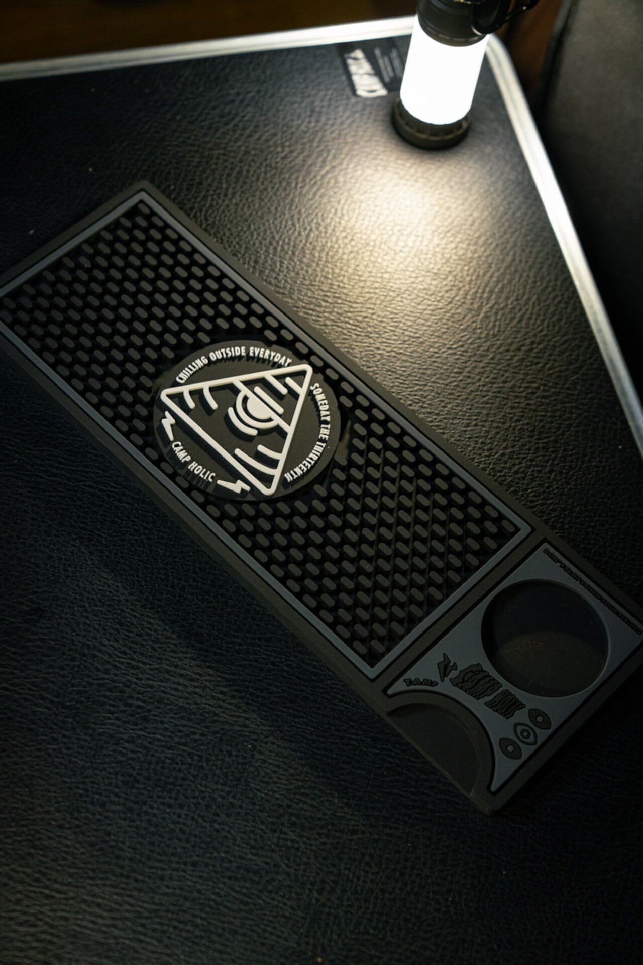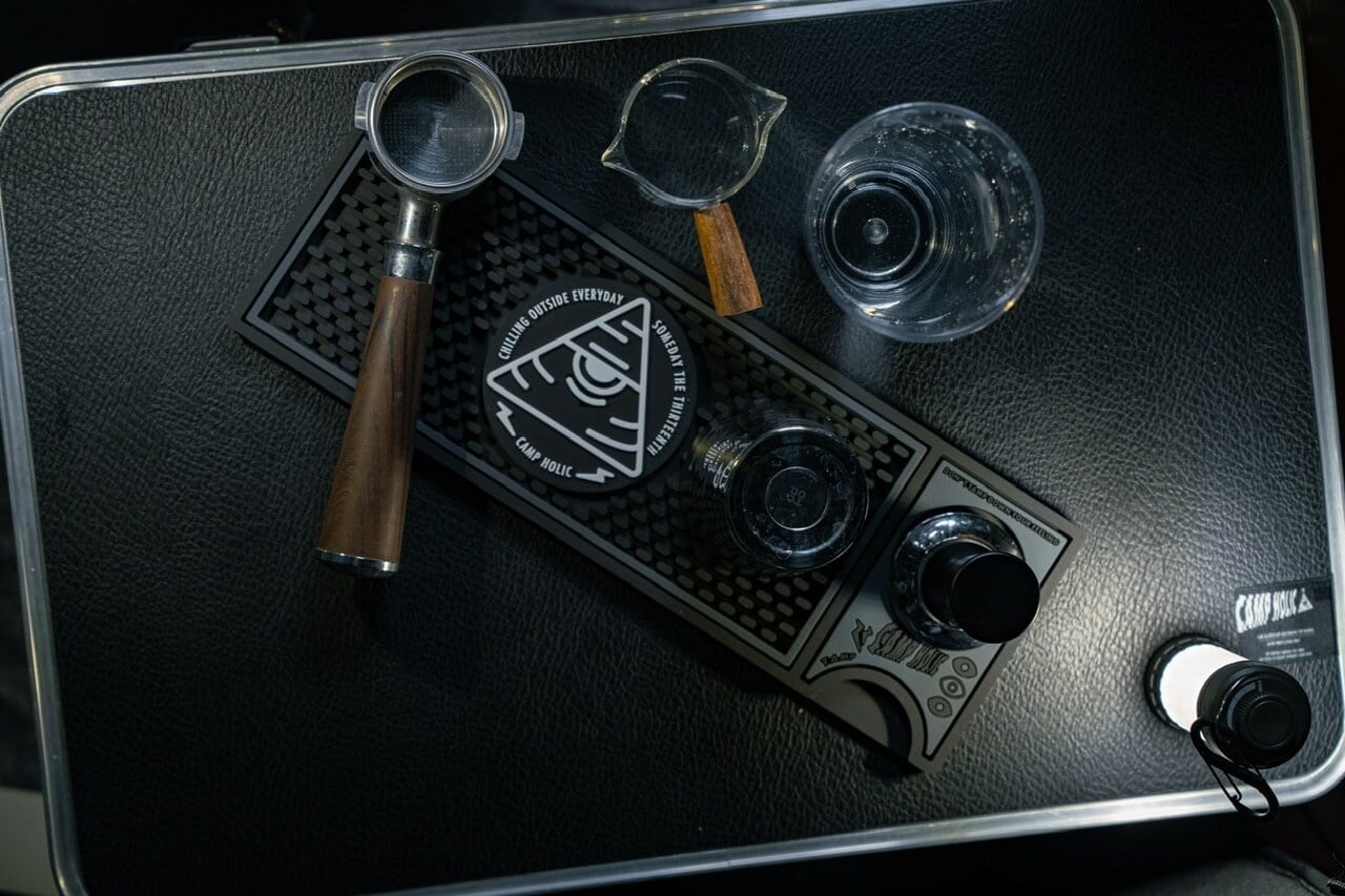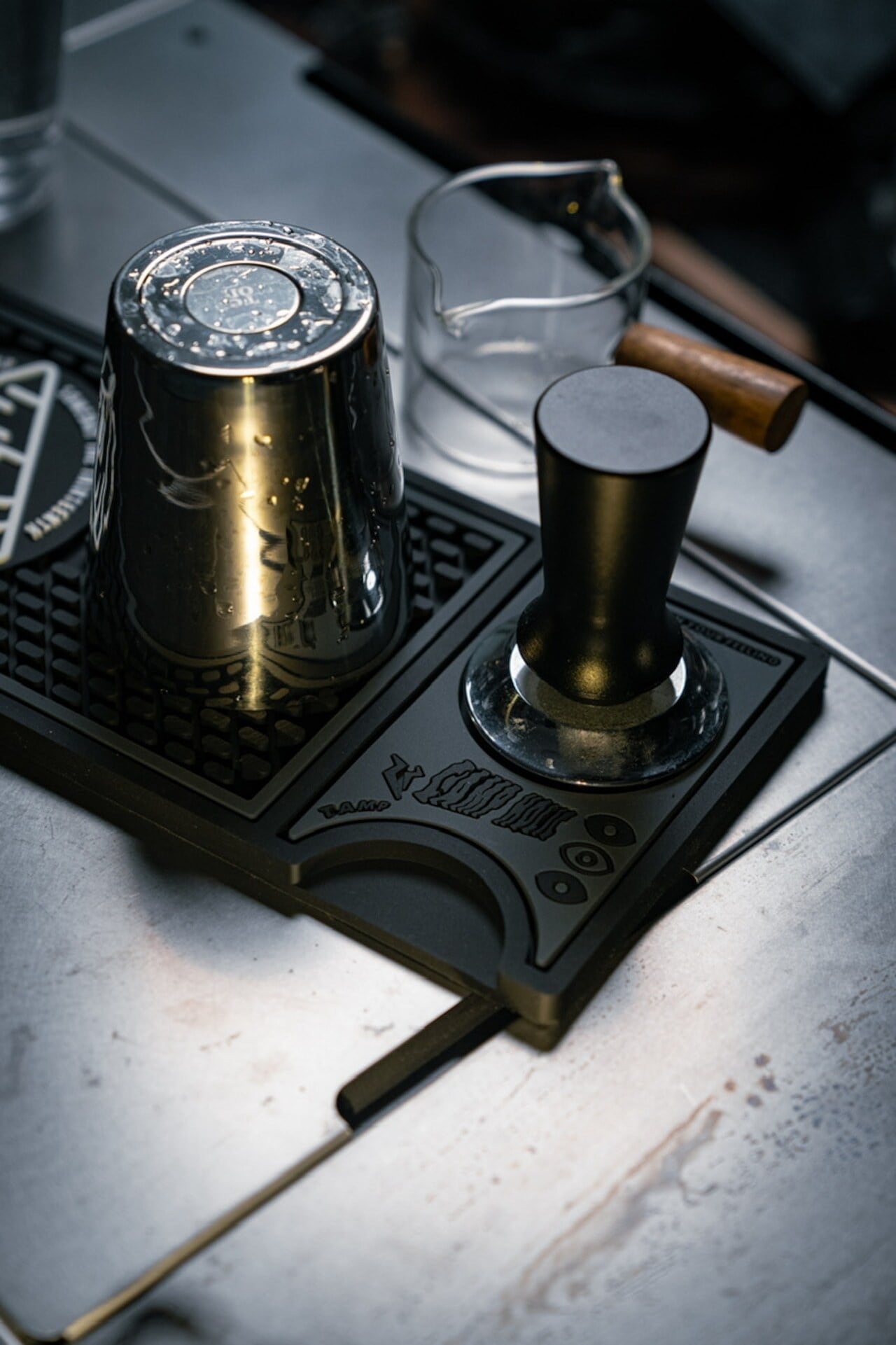 右側にはエスプレッソを楽しむ際に使えるように、タンパー置き場とダンピングゾーンを作りました。
