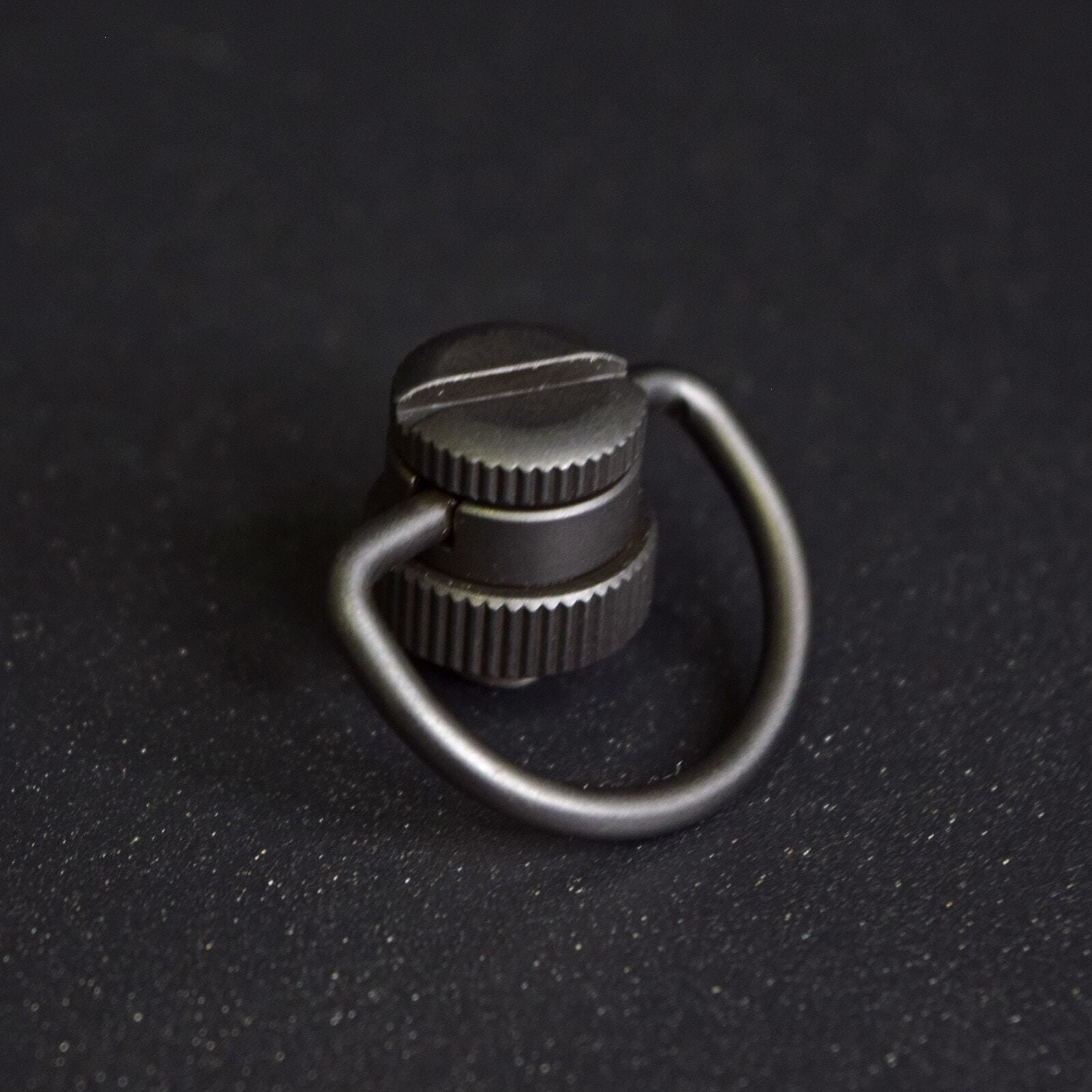 リング部が360°回転するDリング。1/4"インチメスネジを採用しているLEDランタンに取り付ければ、フックに吊り下げる際に好きな向きに調整可能。