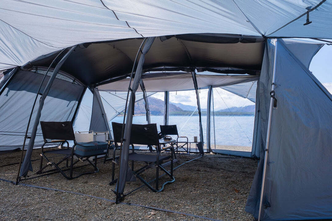 冬キャンプでも、テントの中から雄大な景色を思う存分眺めたい