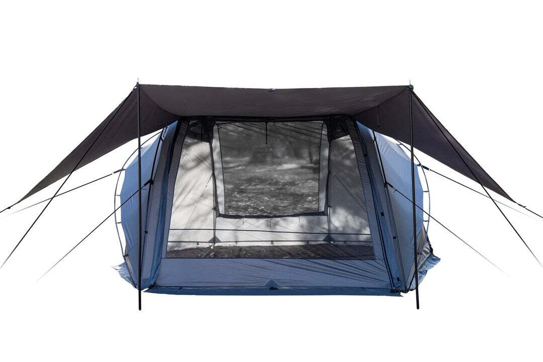 さらに、このシェルターの設営には3本のフレーム構造を取り入れ、ソロやデュオに十分な広さを確保しながら、軽量で簡単に組み立てが完了するよう設計されています。設営に時間を取られることなく、キャンパーが求める本当のひとときに集中できるように。手間を最小限に抑えたこのフレーム構造により、キャンプサイトでの自由度が格段に広がります。広々とした贅沢な空間で焚き火を感じ、ゆったりと道具を配置しながら、まるでリビングのような居心地の良さを味わっていただけるでしょう。