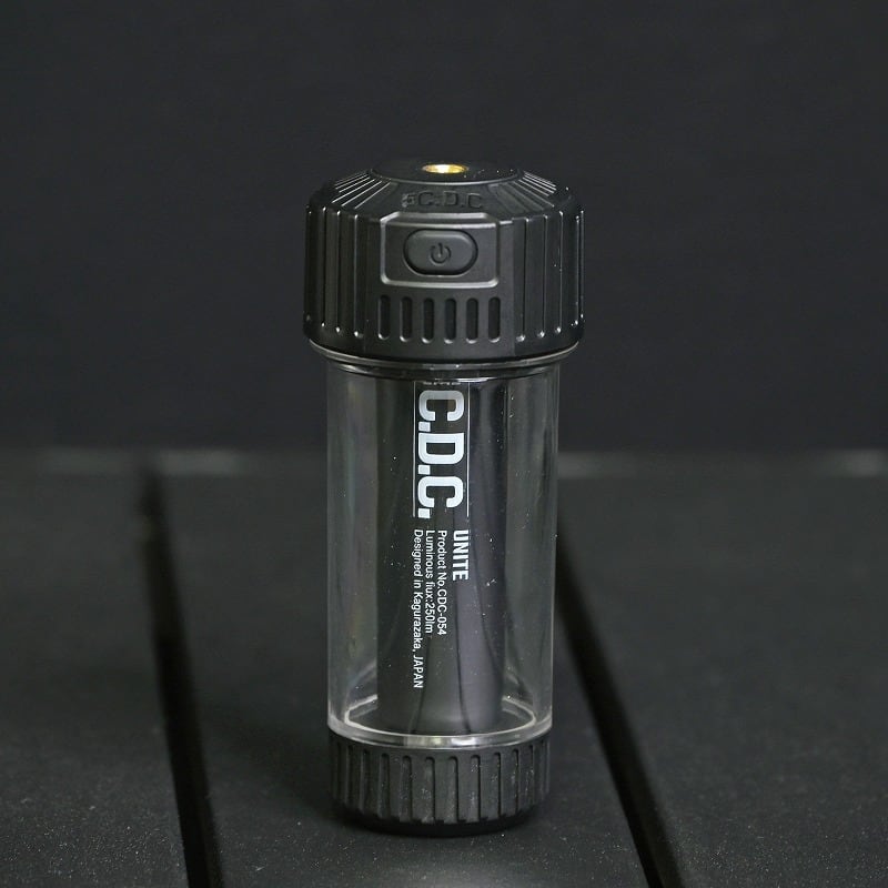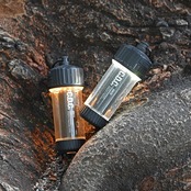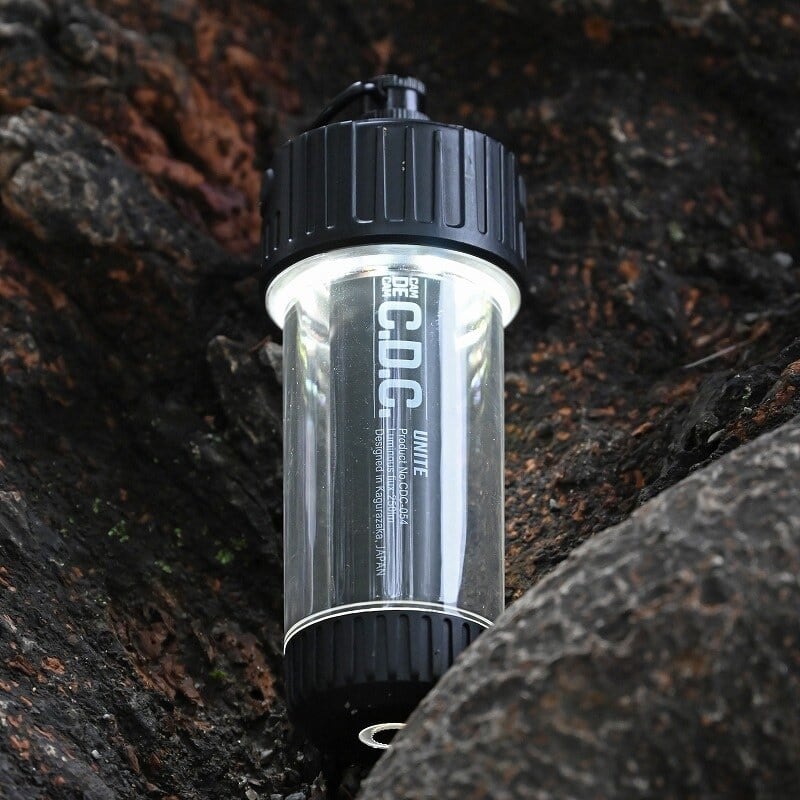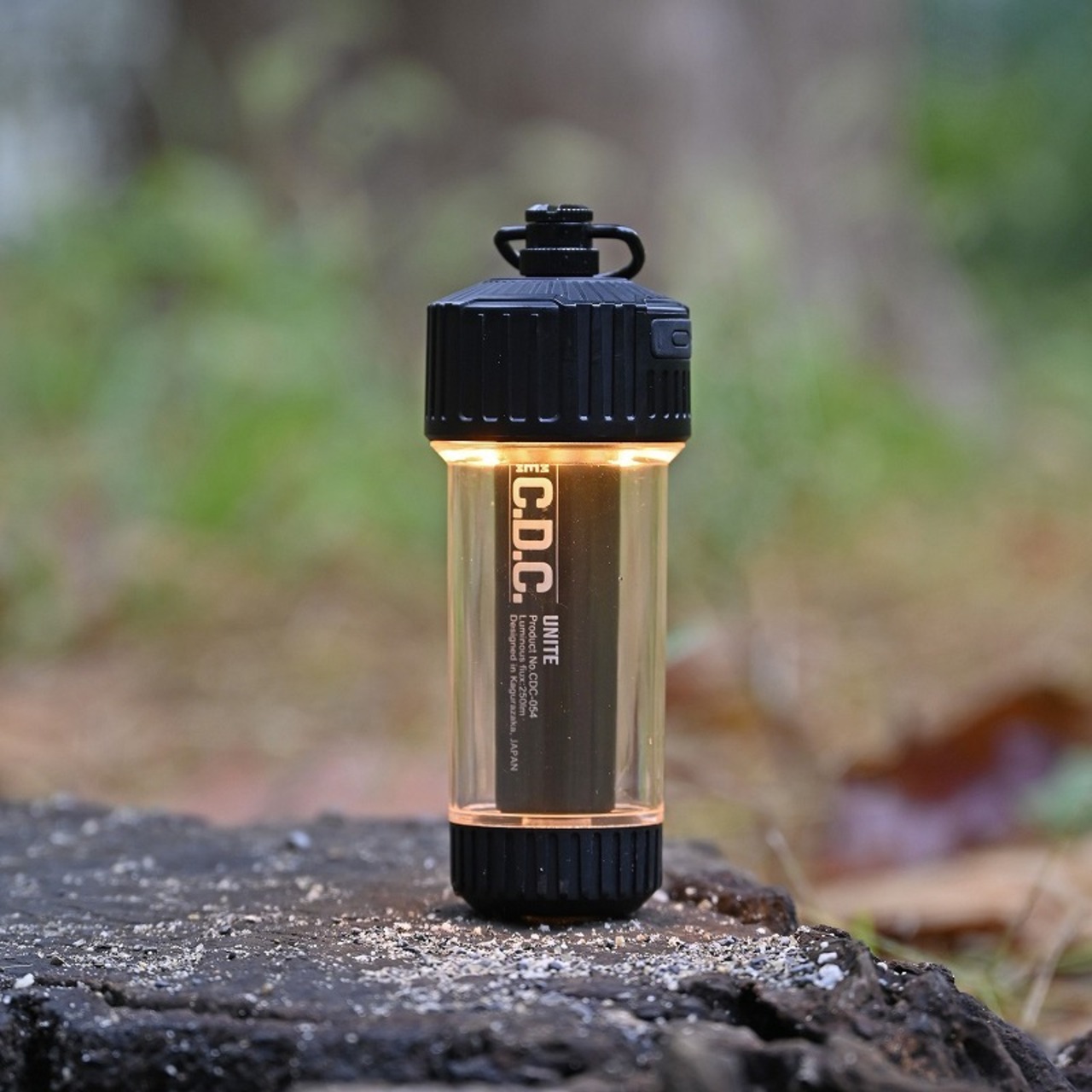 1800Kから6000Kまで色温度を調節できるLEDランタン。焚火のような穏やかな光を再現できます。 光量は大・中・小の3段階調節。最大250lmと優しい光で照らします。 本体の上下には1/4インチネジが切られており、Dリングやミニ三脚の装着など、多様な使い方が可能です。光源を覆うホヤは取り外し可能で、開口部が約φ3.8cm(主にスパイス瓶などで使用されるサイズ)の瓶を取り付ければ、オリジナルのカスタムランタンが作製できます。 屋外での使用を想定し保護等級IP64の防水・防塵性能を備えています。 LEDランタンの入門モデルや、キャンプでのサブランタンとしてもおすすめな、実用性とカスタムの楽しさを兼ね備えたアイテムです。