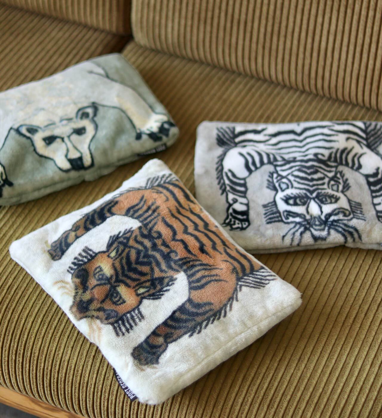 手触りの良いフリース素材を使用したPOST GENERALで人気のタイガー柄や、コミカルなシロクマ柄と、メンズライクなキルティング生地を使用したシンプルなオリーブ・グレーカラーなど、男女問わず使いやすいデザインに仕上げました。