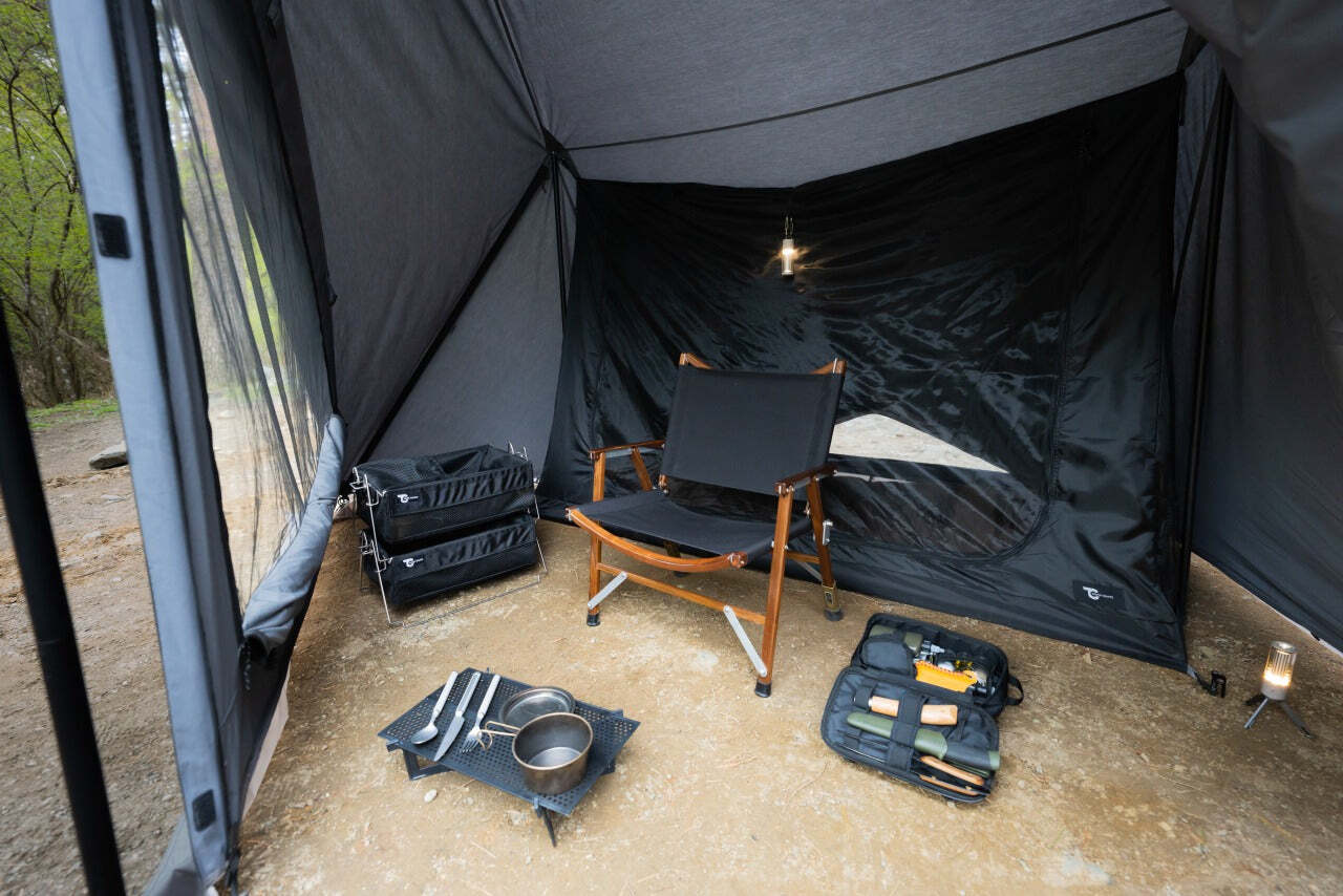 カラーは本体と馴染むブラック。無骨でシックな佇まいのインナーテントです。