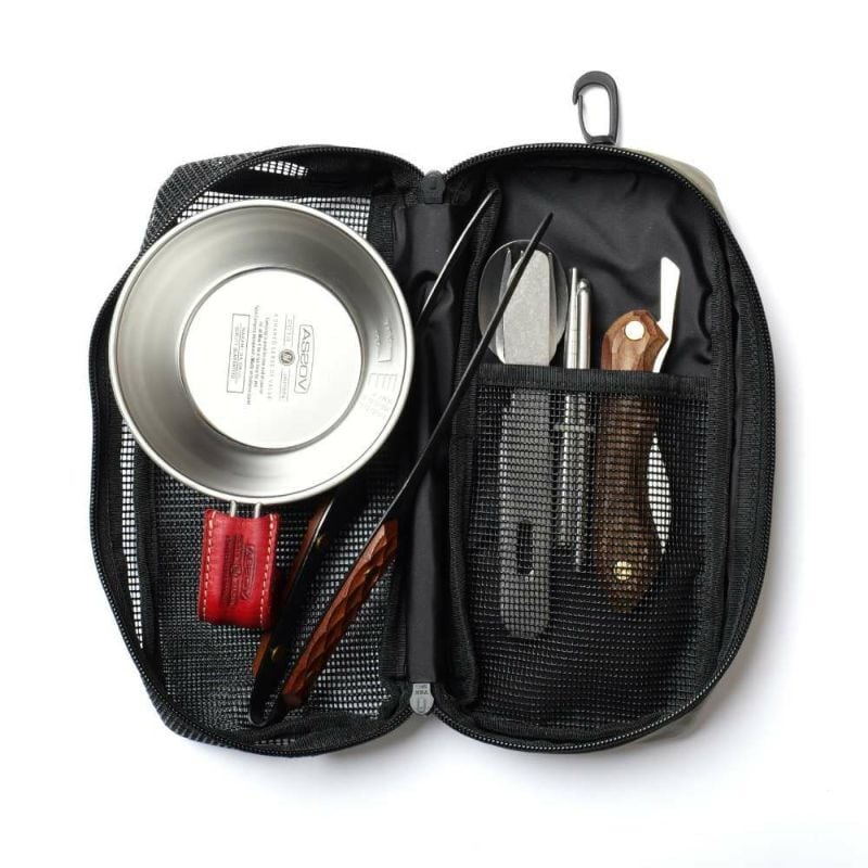カトラリーをはじめ、アウトドア小物を収納。洗ったカトラリーをそのまま収納し、ドライネットとしても使用可能。