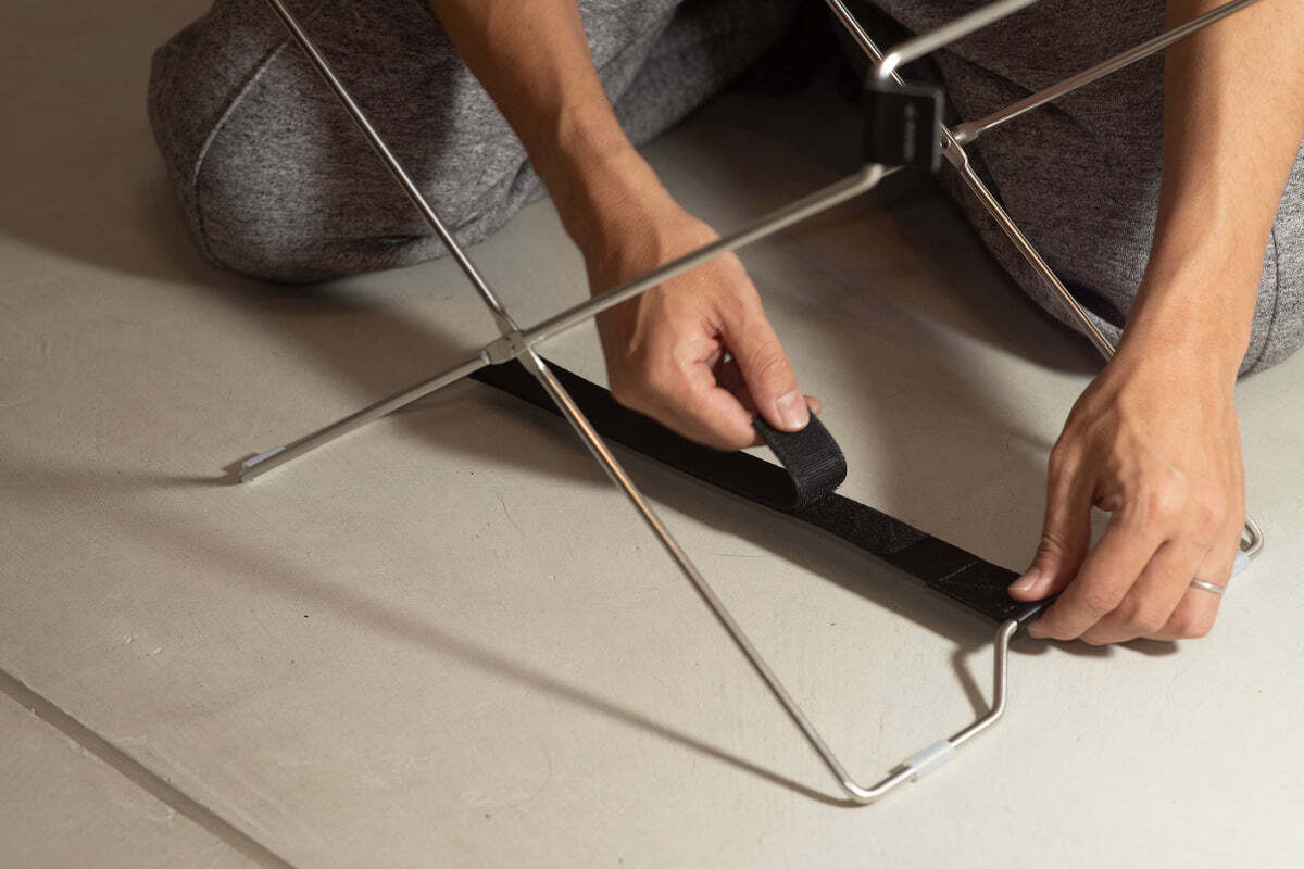 セッティングはワイヤーフレームを広げで凹部をテープで固定すれば完了。