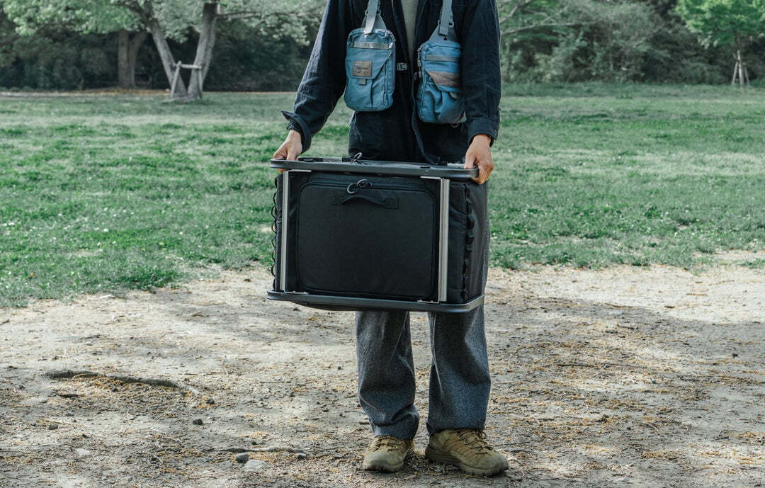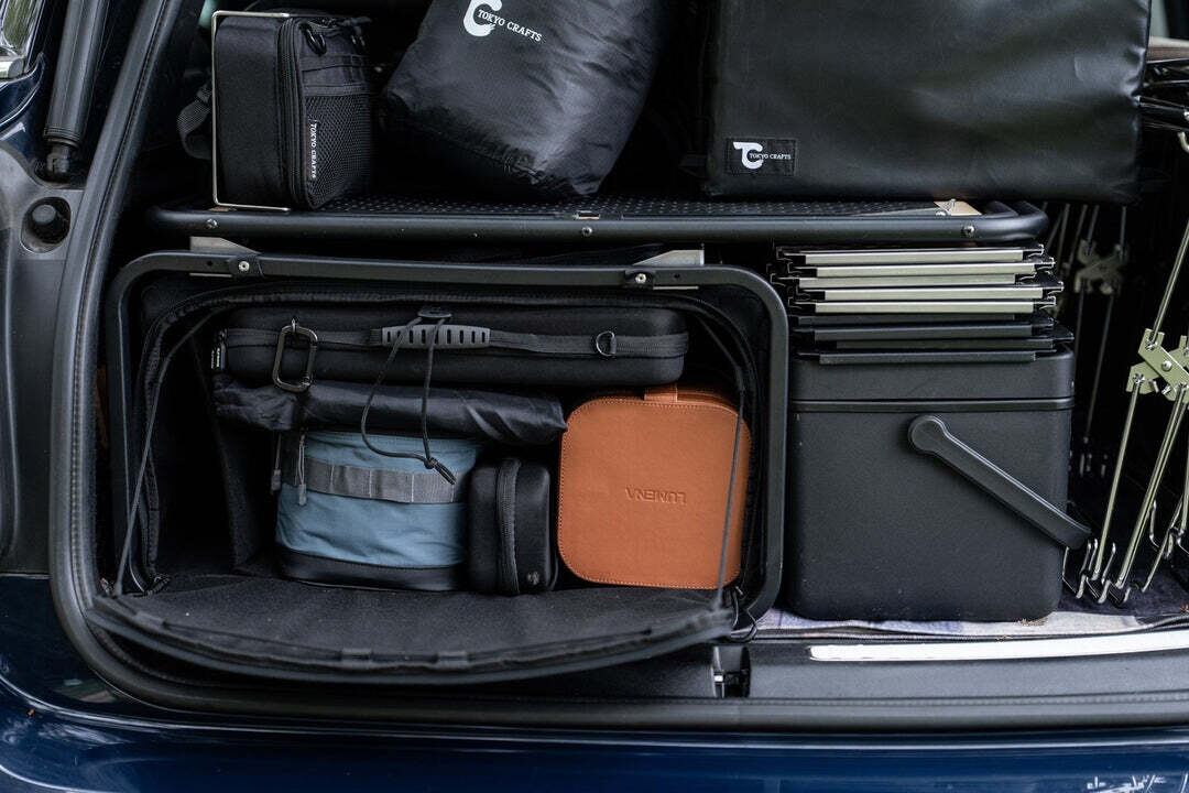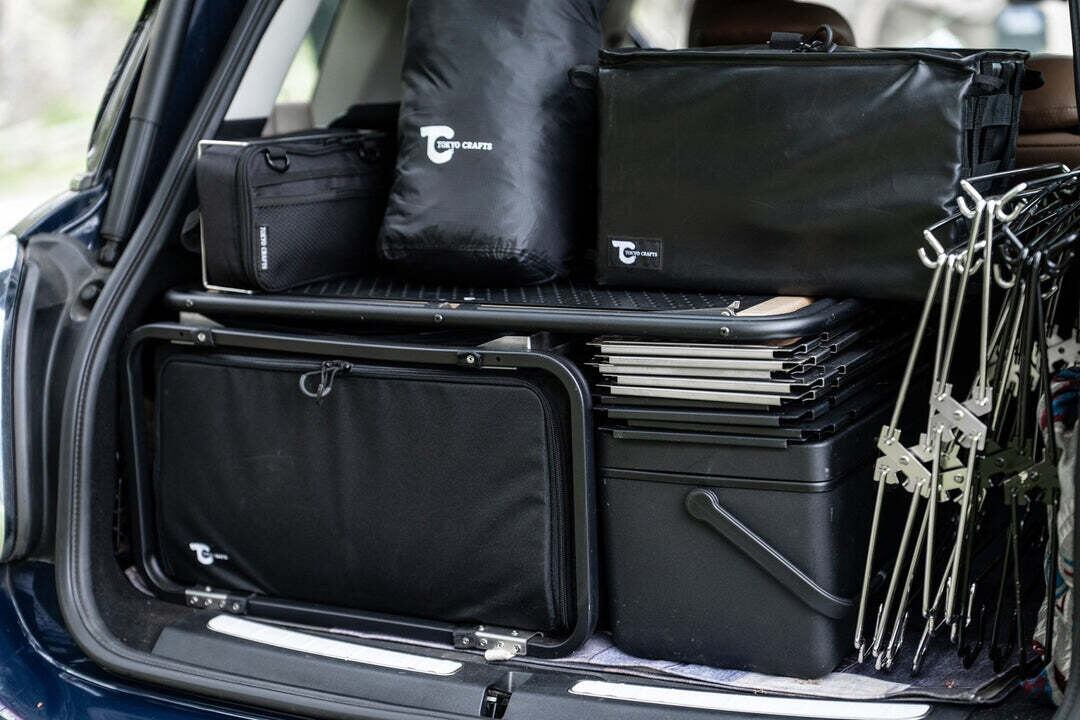 アウトドアへ出かける際、車のトランクや荷室はどうしてもギアが山積みになり、下のほうにある道具を取り出しにくいのが当たり前になっていました。そこで私たちは「積んだままでも即アクセスできる」ストレスフリーな構造を目指し、フレームとファブリックを組み合わせたハイブリッドコンテナの開発に着手。