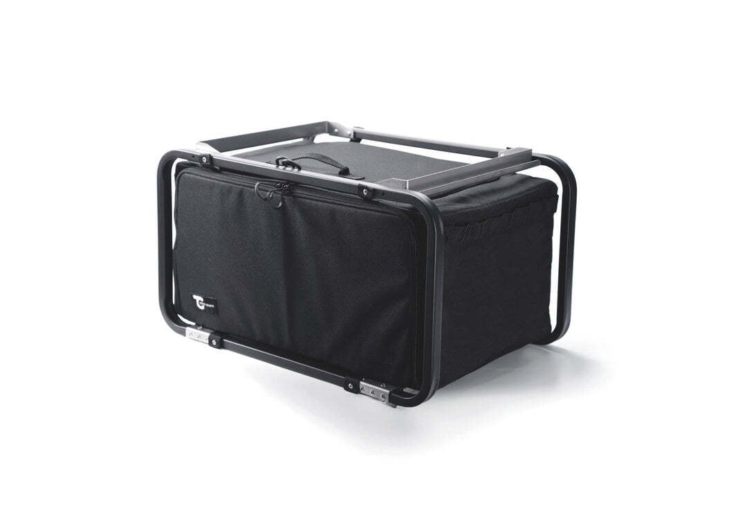 頑丈なアルミ製のフレームをベースにすることで、上に荷物を載せても潰れにくく、段積みしても安定感を保ちます。一方、外装には扱いやすい生地素材を採用することで、上面や正面からパネルを開閉しやすく設計。必要なギアだけをサッと引き出せるため、わざわざボックス全体を引っ張り出して荷物をどかす手間を大幅に削減しました。