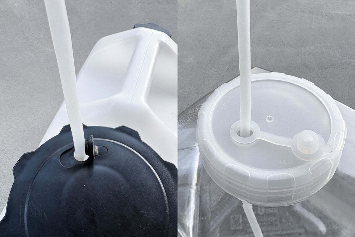 それぞれフタ部分に給水ホースを入れることができる穴が空いています。