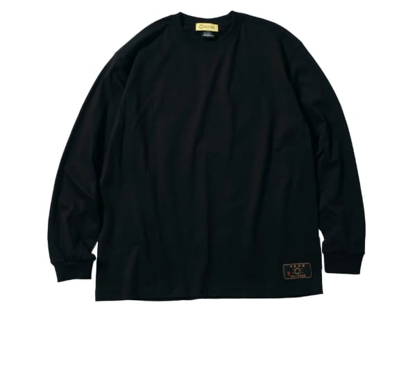 裾には「最高品質」タグを配置。バックプリントの世界観に合わせたレトロなディテールが、さりげないアクセントになっています。