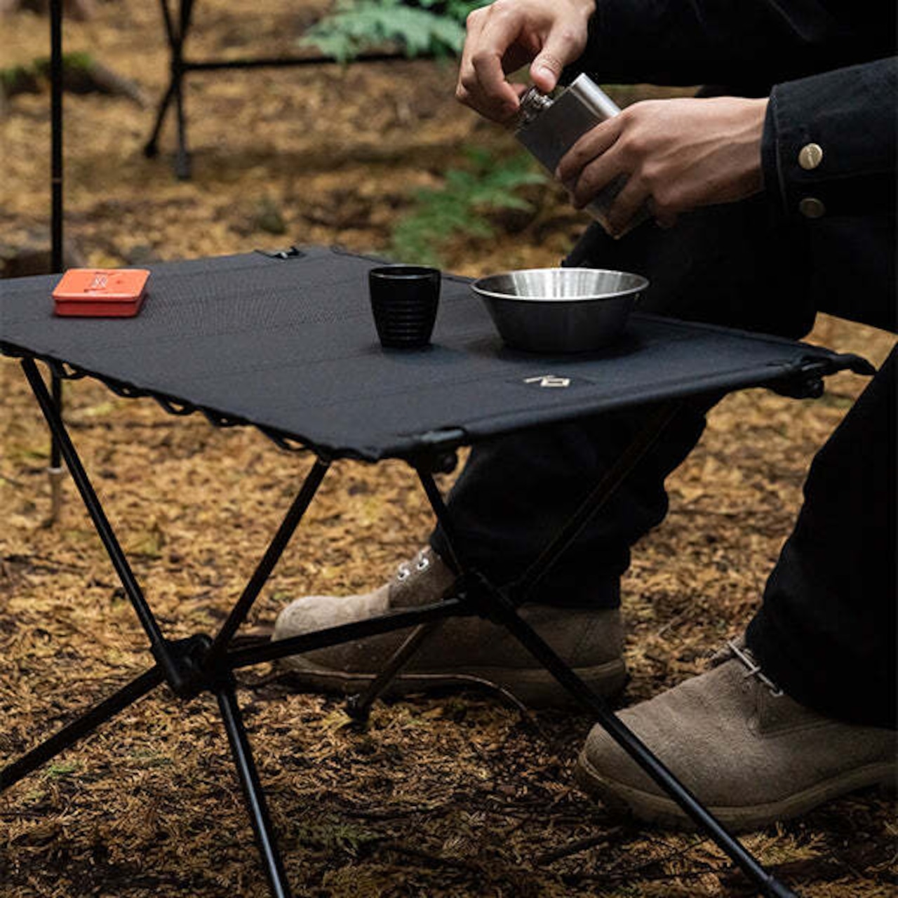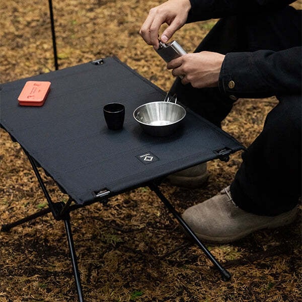 Helinox ヘリノックス タクティカルテーブルMはタクティカルチェアにぴったりなタクティカルテーブルSよりも、一回り大きな折り畳み式のテーブルです。