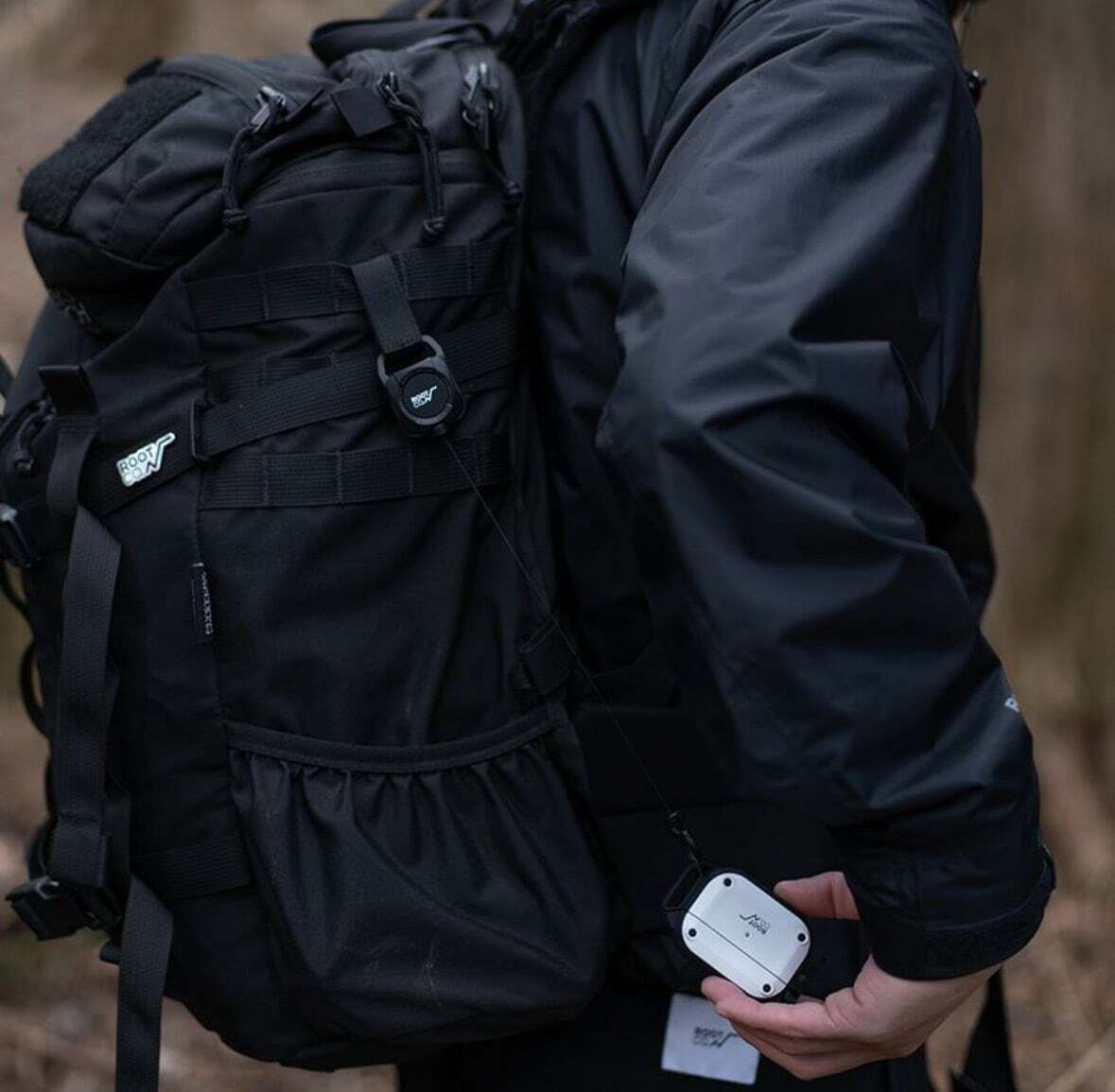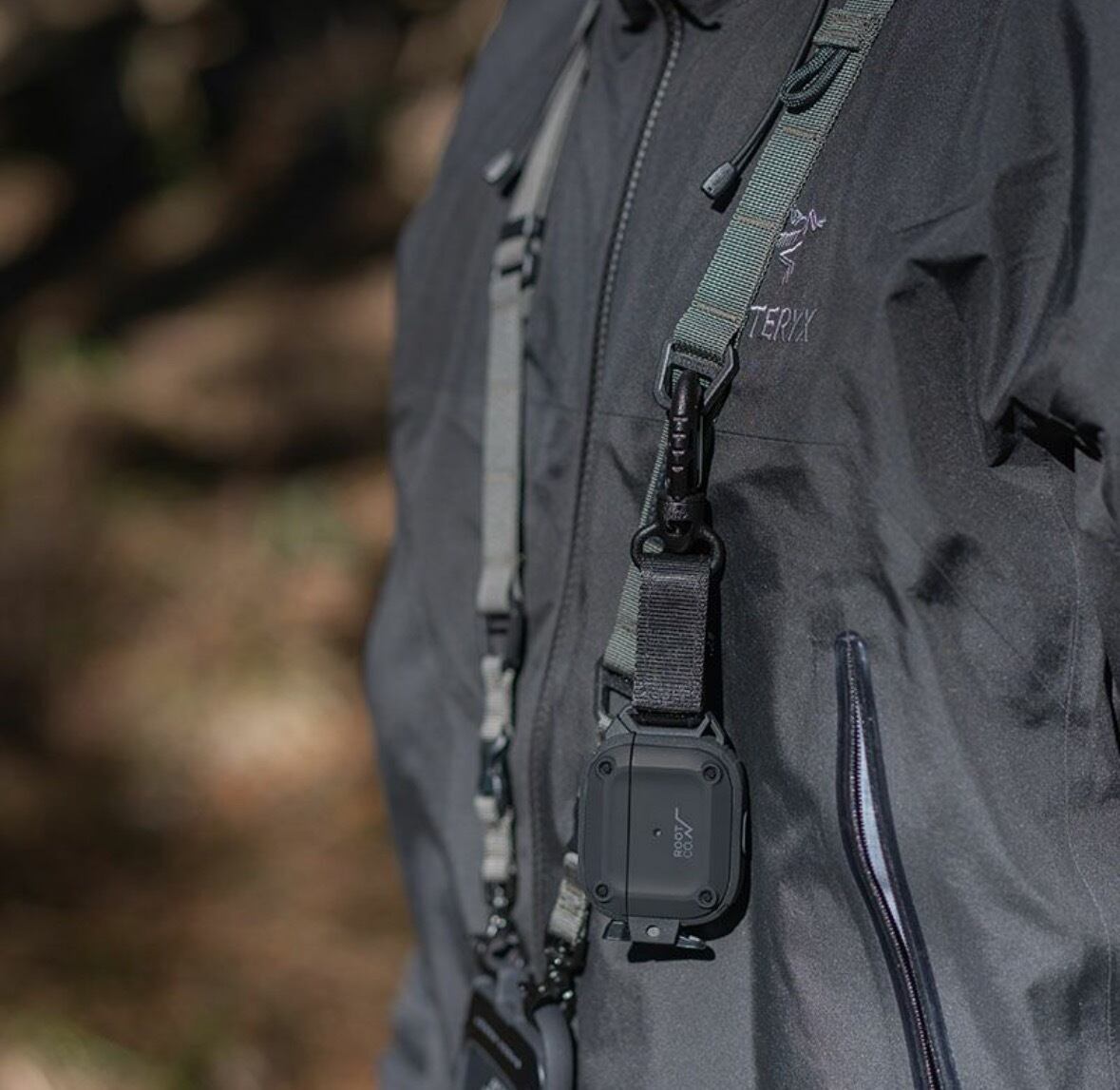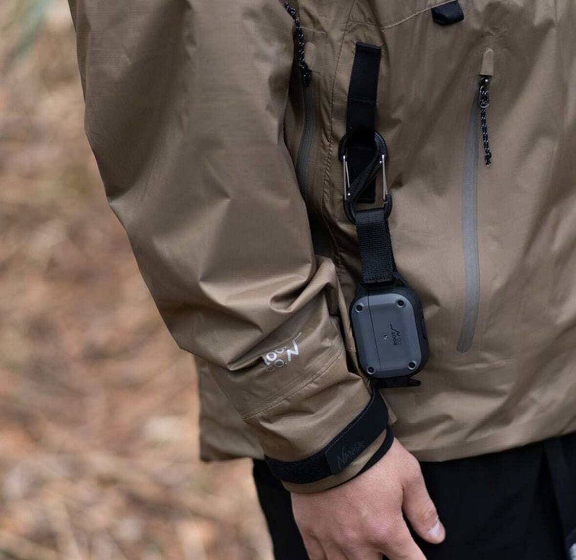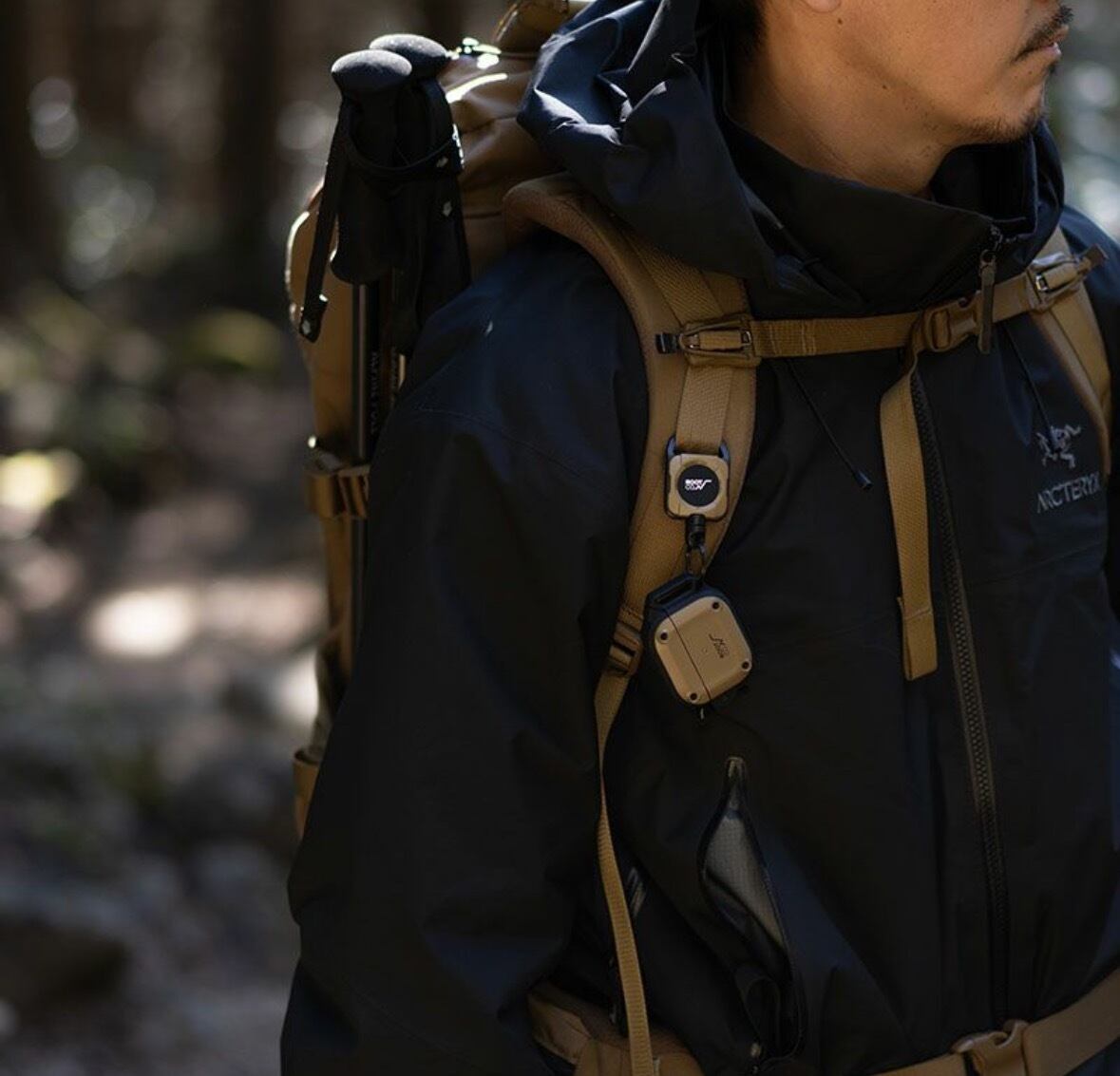 米国MIL規格準拠の耐衝撃性&PCとTPUの2層構造で衝撃吸収力を兼ね備えたAirPodsケース。20mm幅のウェビングテープ等を取り付け可能なループと二重リングを取り付け可能なホールをサイドに搭載し、安心のロック機構を採用しました。