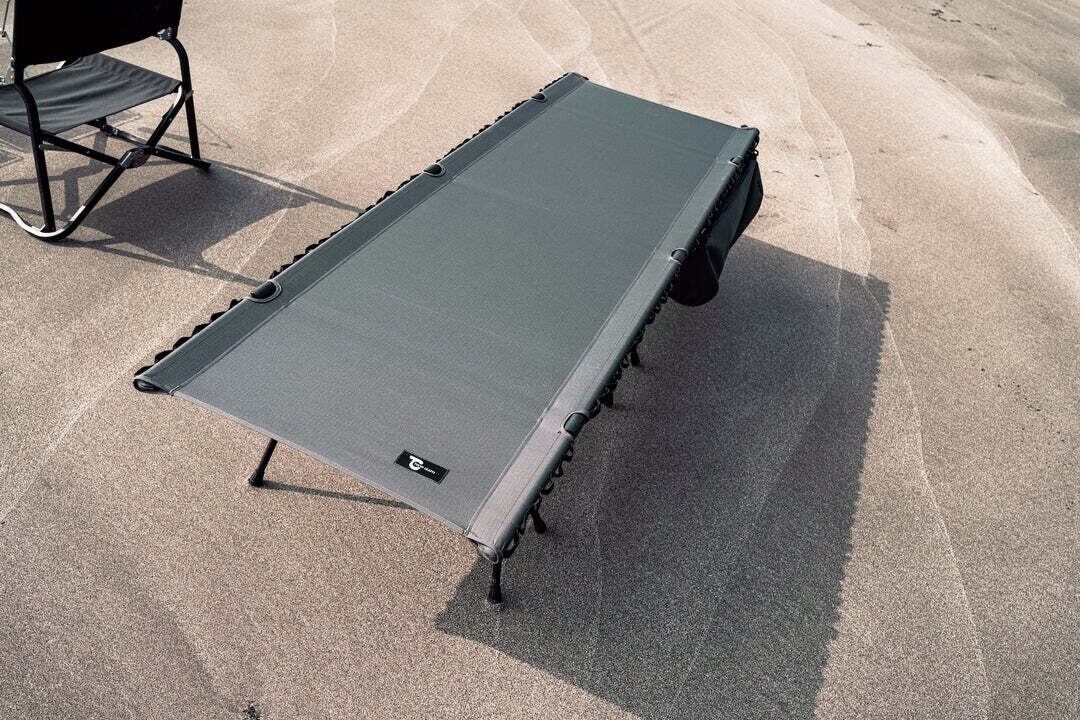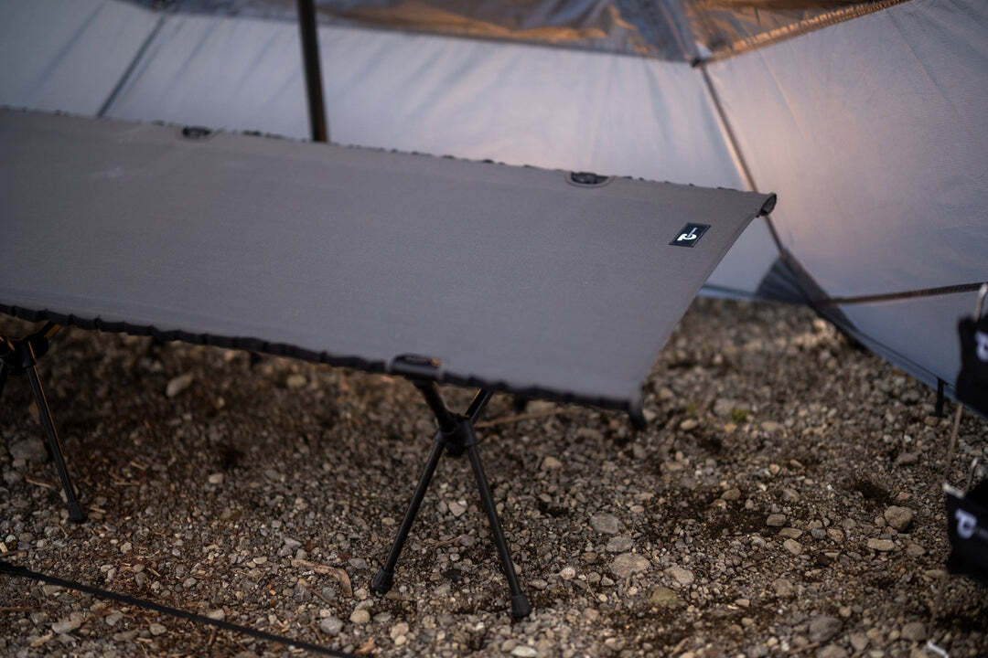 深く沈み込まず、寝心地の良い張り具合で、キャンプ場での快眠を追求しました。ポールを通す箇所にはメッシュガーゼを縫い込み、軋み音を軽減。