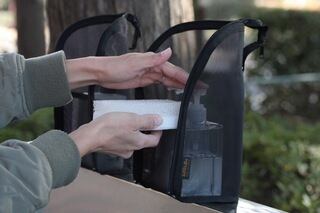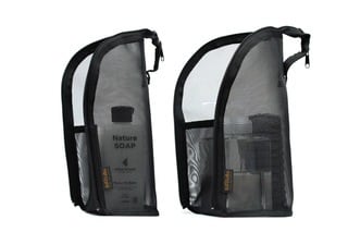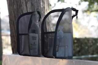 コンセプトは、屋外での洗い物の際に洗剤・スポンジを濡れたまま仕舞えて乾燥出来るメッシュケース。