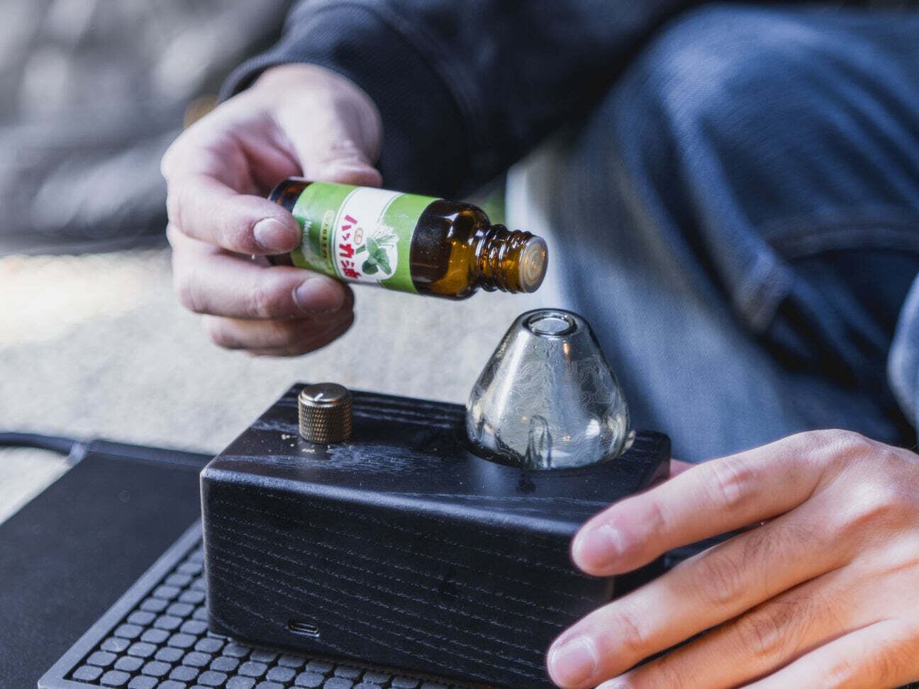 バッテリー駆動で持ち運びに便利なネブライザー式アロマディフューザー。