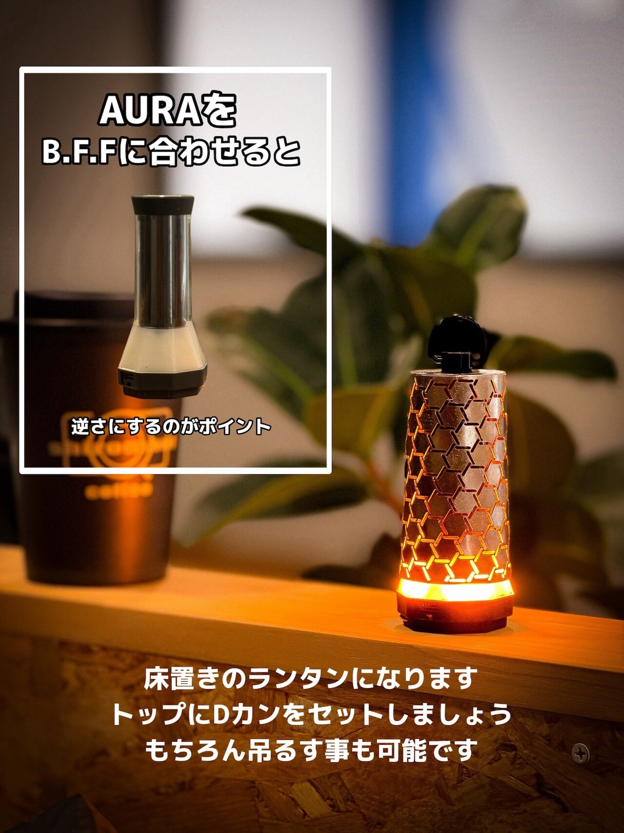 LEDランタンにセットして、吊り下げでも卓上でも、お手持ちのランタンの表情をより滑らかに導きます。