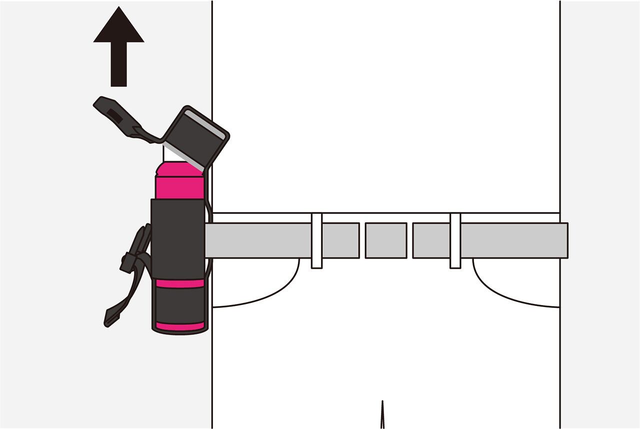 ホルダーにボトルを収納する際は、使用時にすぐ噴射できるよう、ノズルの向きを調整してから収納してください。