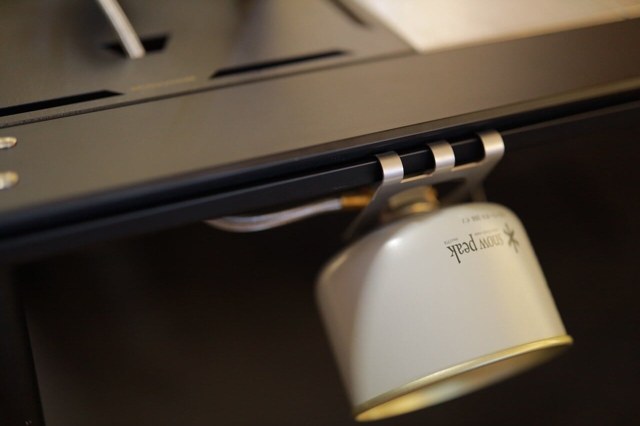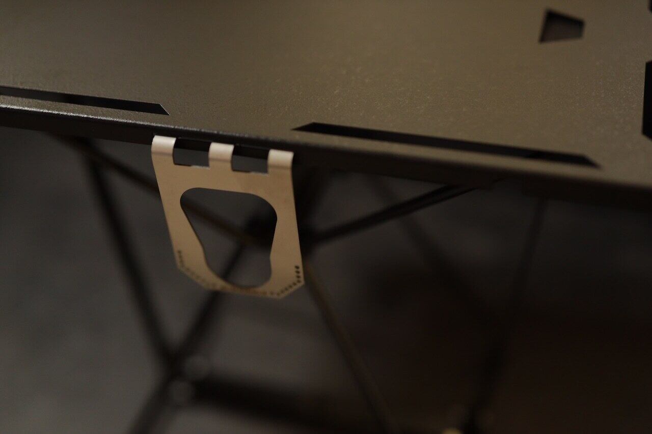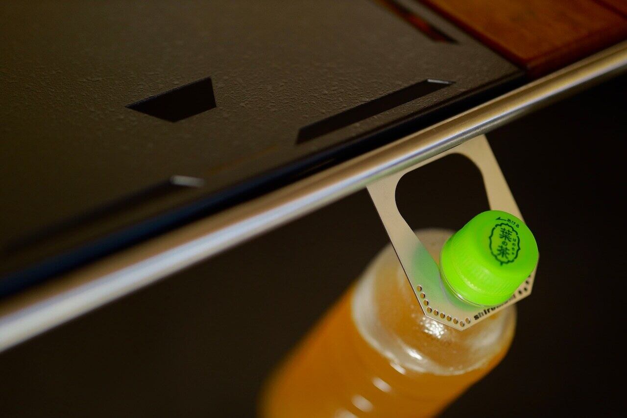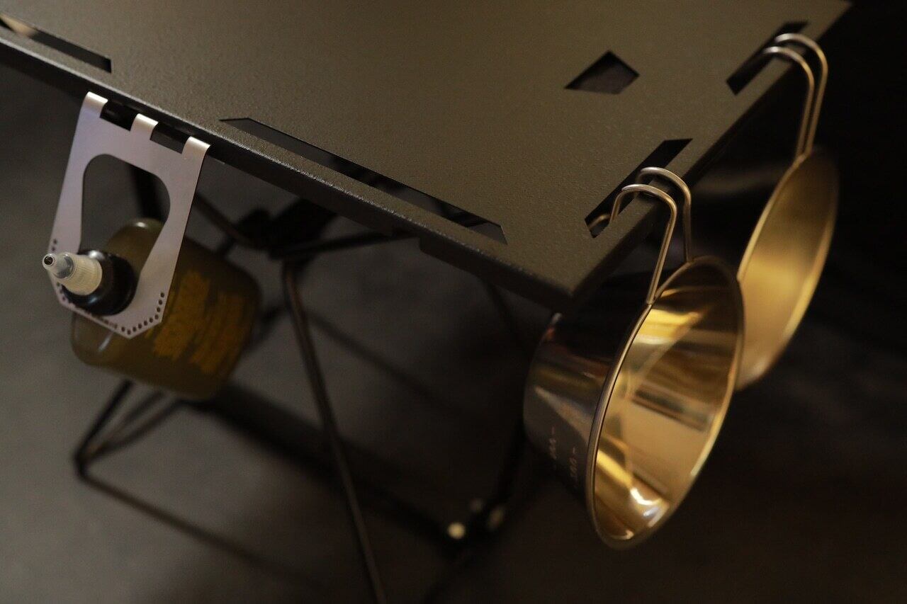 「peakers hook」の穴はOD缶やペットボトル等を引っ掛けることが可能。「peakers tray」やIGTにセットした際、色んな用途で活用出来ます。