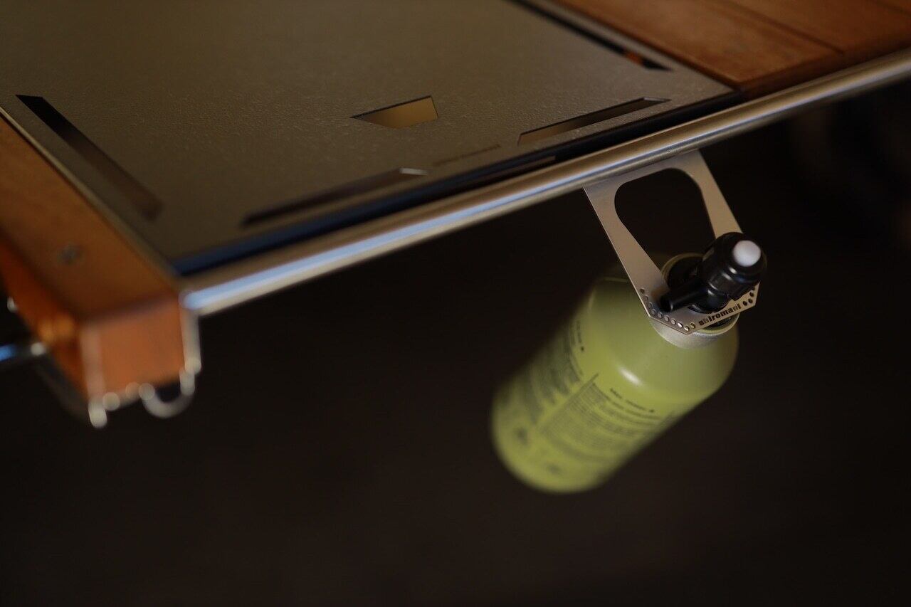 ペットボトルやガス缶はpeaker's hookの表側からも裏側からも引っ掛ける事が出来ます。