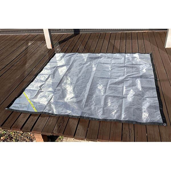 水に強く、引き裂きに強い、汚れが付きにくいPE(ポリエチレン)素材を使用し、マルチに使えるシート。CAMP時の荷物の積み下ろしの際に地面に敷き、汚れを防ぎ車内やテント何に入れるものを汚さないようにします。 四隅にハトメ、辺の中央にはループを付けており、風で飛ばれれないようにペグ等で地面に固定が可能です。 リフレクション生地が一ヶ所三角形に縫い付けられており視認性を高めております。 必要な大きさに畳んで汚したくない物の下に敷いたり、グランドシート替わりにしたりとマルチに使用できる1枚持っておくと重宝するアイテムです。 専用のケースが付き、汚れたシートを保管できます。 「素材特性」 水を通さず丈夫で軽量ななポリエチレン素材・汚れなどをサッと水拭きできるアウトドアに適した素材。
