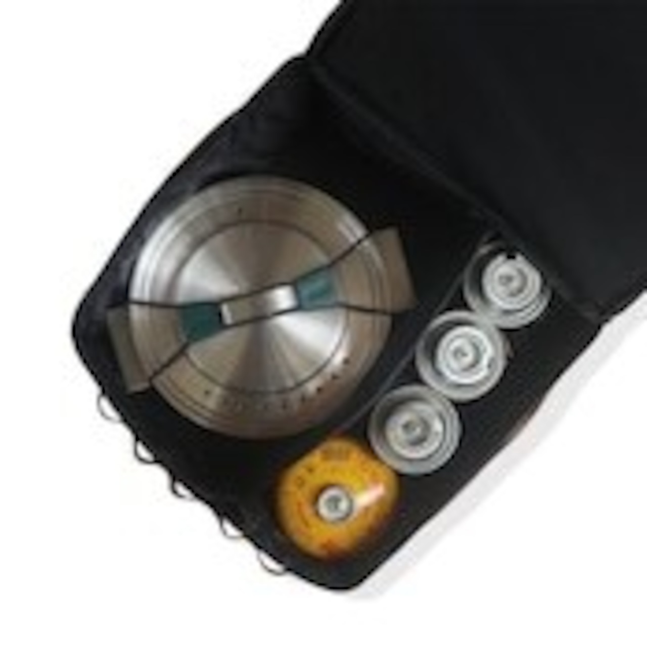 生地内側には5mmのパッド入りなので、大きめの調理器具やお鍋などを入れることが可能です。取り外し可能な仕切りが縦に2枚付属。一緒にガス缶など調理に必要な道具をまとめておけます。使用時は、ユニフレームのフィールドラックの下にちょうど収まる大きさ。