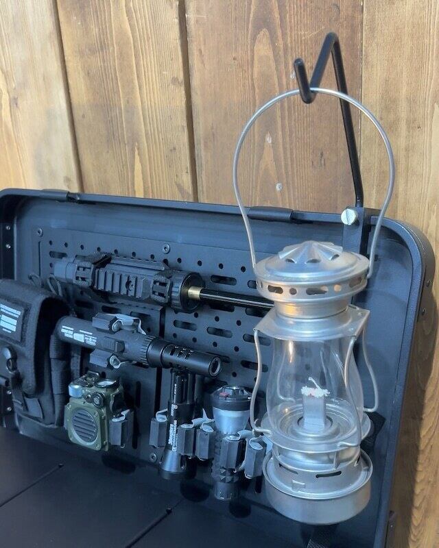 ランタンハンガーはアルミコンテナ用とテーブル用と2種類あり穴に刺してネジを締めるだけの簡単取り付け仕様になってあります。
