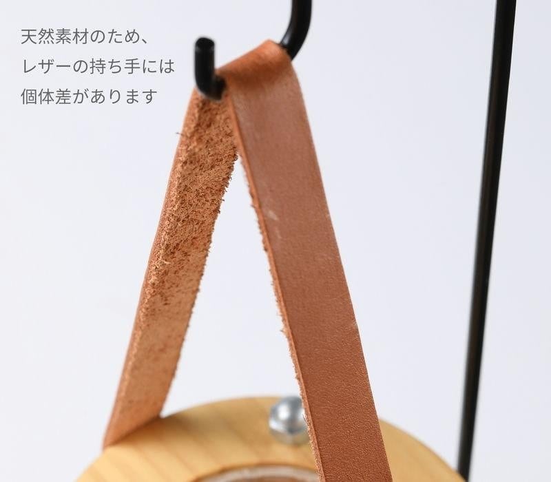 レザーのハンドル付きで、ナチュラルなキャンプギアになじむ色合いと素材感が、さりげなくキャンプサイトの雰囲気を格上げしてくれます。